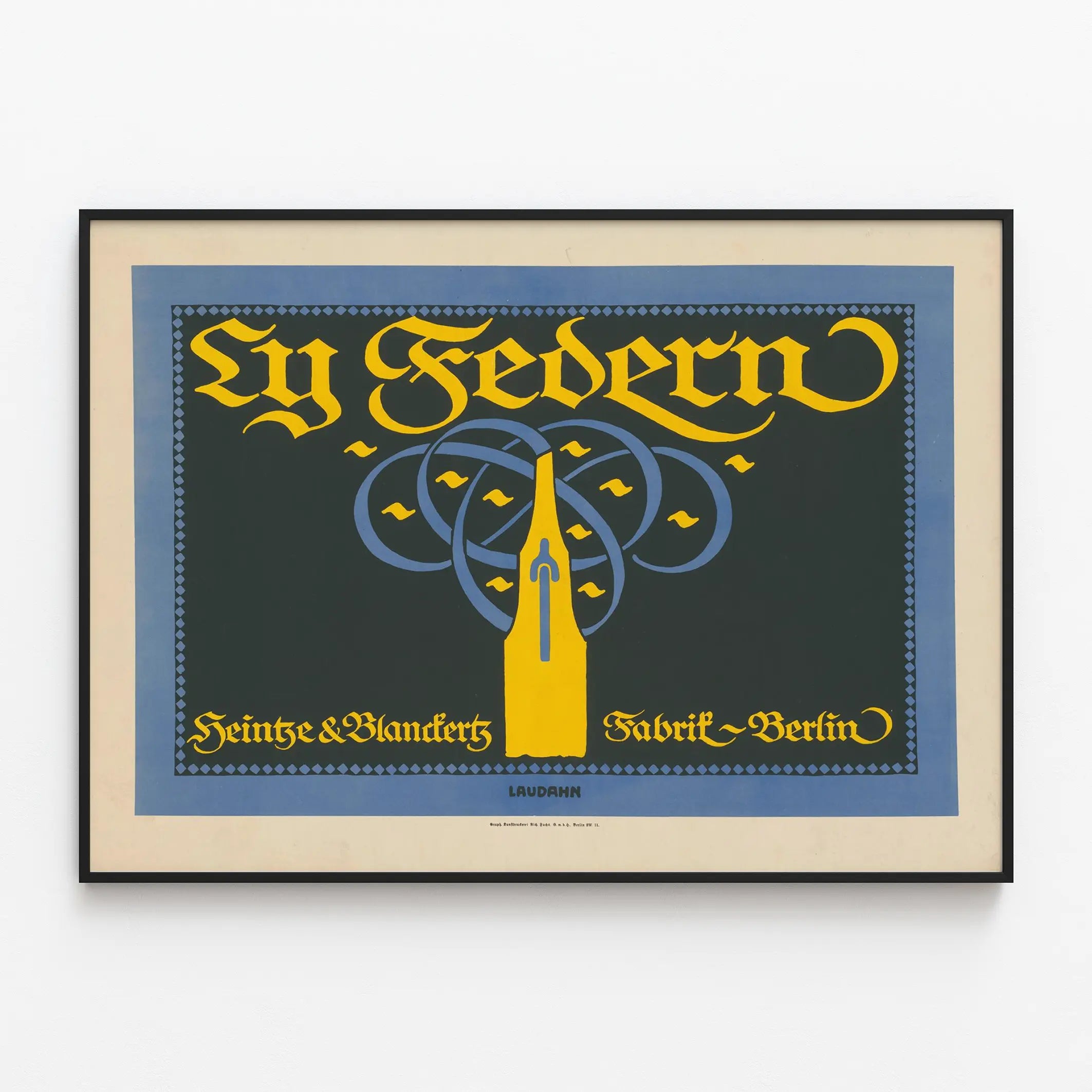 Affiche vintage Heintze & Blanckertz Berlin Ly Federn