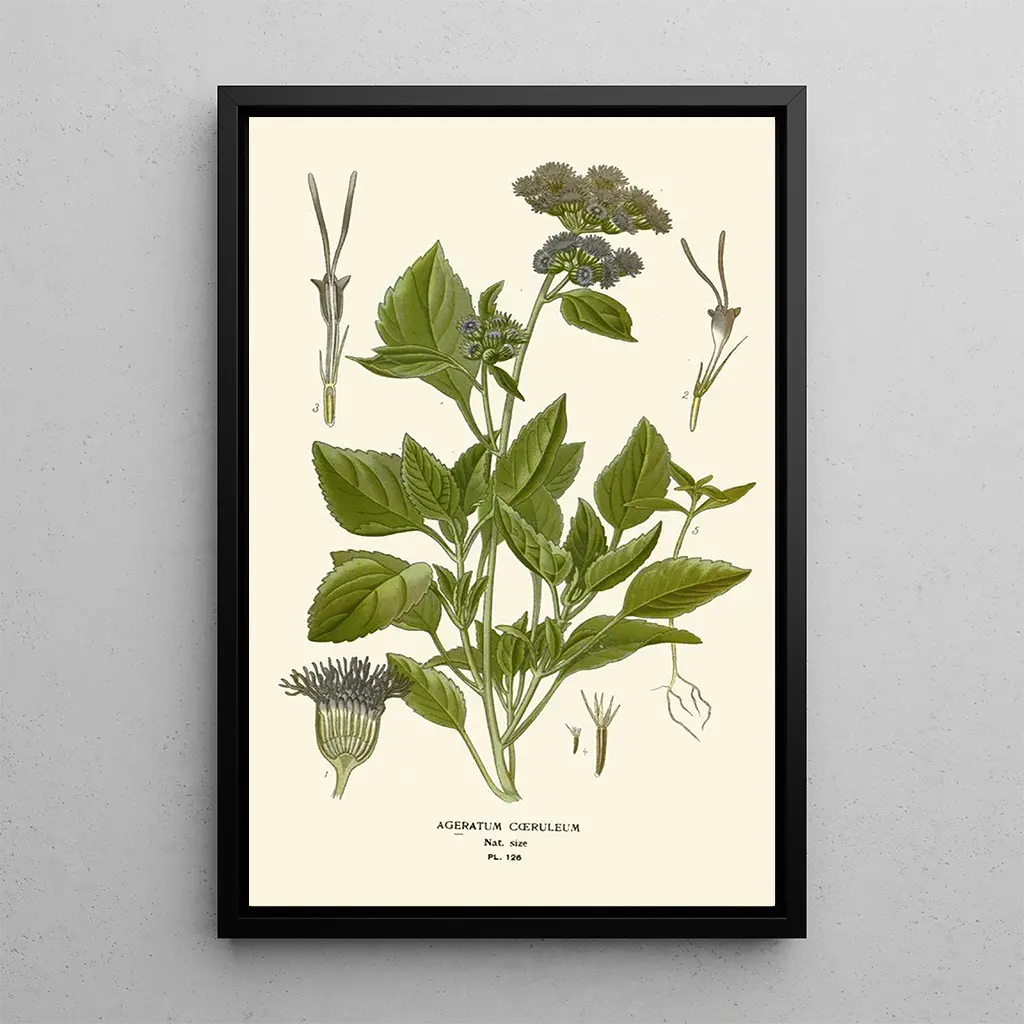Ageratum coeruleum -taidegrafiikka on erinomainen sisustuselementti, joka rikastuttaa asuintilaasi. Olipa kyseessä olohuone, makuuhuone tai työhuone, tämä taidegrafiikka tuo raikkautta ja rauhaa. Sen reproduktion laatu takaa teoksen yksityiskohtien uskollisuuden, samalla kun se tarjoaa hienostuneen estetiikan. Sisällyttämällä tämän teoksen sisustukseesi luot rauhallisen ja elegantin ilmapiirin, juhlistaen kukkien kauneutta ja luonnon rikkautta.