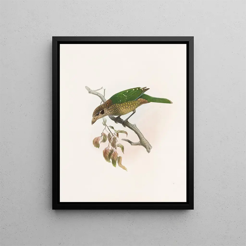Luonnollisen taiteen kiehtovassa maailmassa Daniel Giraud Elliotin teos "Ailuroedus melanotus" nousee todelliseksi mestariteokseksi. Tämä maalaus, joka vangitsee linnun eleganssin ytimen, kuljettaa katsojan maailmaan, jossa luonnon kauneus korostuu poikkeuksellisen tarkasti. Tämän taidetulosteen kautta katse kiinnittyy välittömästi värien rikkauteen ja yksityiskohtien hienostuneisuuteen, kutsuen pitkäkestoiseen pohdintaan. Taiteilija, lahjakkuutensa ansiosta, onnistuu herättämään esiin paitsi muodon myös tämän linnun sielun, tehden teoksesta ajattoman ja universaalin.