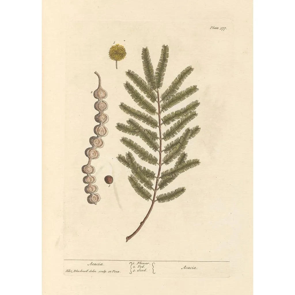 L'œuvre Acacia d'Elizabeth Blackwell est une véritable célébration de la beauté florale. Les délicates nuances de vert et de jaune se mêlent harmonieusement, créant une atmosphère apaisante et vivifiante. La technique de la gravure sur cuivre, utilisée par l'artiste, permet de capturer les détails minutieux des feuilles et des fleurs avec une précision remarquable. Chaque élément de la composition semble vibrer sous la lumière, invitant le spectateur à plonger dans un univers où la nature s'épanouit dans toute sa splendeur.