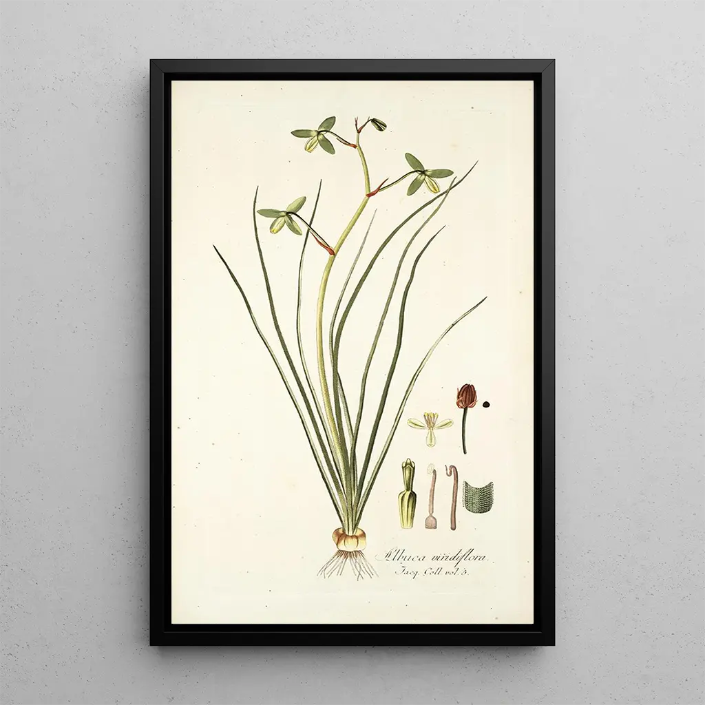 Taidegrafiikka "Albuca viridiflora" on ihanteellinen koriste-esine tuomaan luonnon elementtiä sisätiloihisi. Olipa kyseessä olohuone, toimisto tai makuuhuone, tämä taulu herättää rauhan ja kasvikunnan kauneuden. Sen taidegrafiikan laatu takaa kirkkaat värit ja tarkat yksityiskohdat, kunnioittaen alkuperäistä teosta. Esteettisen vetovoimansa ansiosta tämä kangas miellyttää taiteen ja botanikan harrastajia, samalla sulautuen harmonisesti erilaisiin sisustustyyleihin.