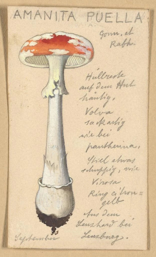 "Amanite puella" Hans Baldungilta on kiehtova teos, joka herättää luonnon haurauden ja ohikiitävän kauneuden. Pastellivärit ja hienovaraiset muodot luovat pehmeän ja uneksivan tunnelman, jossa voi melkein tuntea kevään aamun raikkauden. Baldung, hänen tekstuurien ja valojen hallintansa ansiosta, onnistuu vangitsemaan tämän sienten olemuksen, joka symboloi mysteeriä ja kiehtovuutta. Kompositio, sekä yksinkertainen että yksityiskohtainen, kutsuu katsojan tarkkaavaiseen pohdintaan, paljastaen vähitellen tämän elävän luonnon hienouksia.
