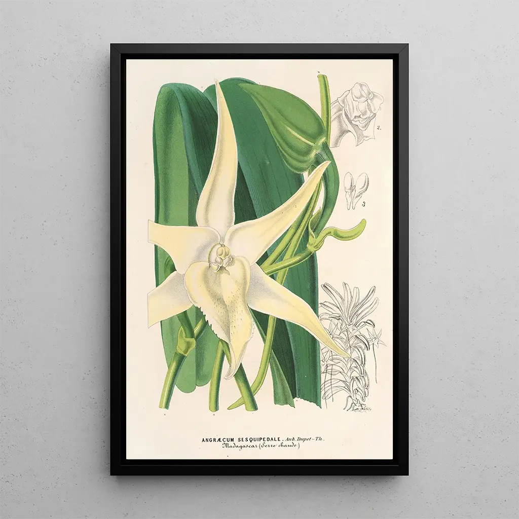 Angraecum sesquipedale -taidegrafiikan reproduktio on ihanteellinen koriste-esine mihin tahansa tilaan, olipa kyseessä olohuone, toimisto tai makuuhuone. Sen läsnäolo tuo eksoottisuuden ja raikkauden tuntua, samalla symboloiden hienostuneisuutta. Taidegrafiikan laatu takaa yksityiskohtien uskollisuuden alkuperäiselle, mahdollistaen tämän kasvin kauneuden nauttimisen ilman huolenpitoa. Sen esteettinen vetovoima tekee siitä ihanteellisen valinnan kasvitieteen harrastajille ja taiteen ystäville, lisäten rauhan ja hienostuneisuuden tunnelmaa sisätiloihisi.
