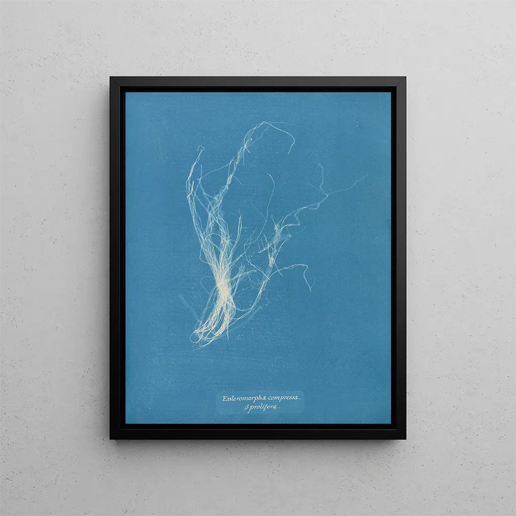 Anna Atkins, pionnière de la photographie botanique, a su allier la science et l'art dans ses œuvres. 'Enteromorpha compressa prolifera' est une illustration emblématique de sa méthode unique, utilisant la technique du cyanotype pour capturer la beauté des algues. Dans cette œuvre, les nuances de bleu et les formes délicates des algues sont mises en valeur, révélant non seulement la précision scientifique mais aussi une esthétique raffinée. En travaillant à une époque où la photographie était encore à ses balbutiements, Atkins a ouvert la voie à une nouvelle forme d'expression artistique qui continue d'inspirer les artistes contemporains. Son utilisation innovante des techniques de taidegrafiikka a permis de créer des œuvres qui se distinguent par leur légèreté et leur luminosité. Aujourd'hui, ses créations sont recherchées tant pour leur valeur historique que pour leur capacité à enrichir les espaces contemporains avec une touche de nature et de poésie. La taidegrafiikka de cette œuvre est un ajout parfait pour ceux qui souhaitent introduire une note d'élégance et de sérénité dans leur décoration intérieure.