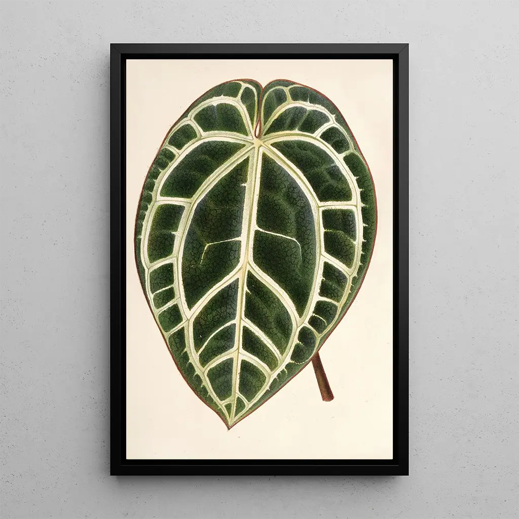 Anthurium crystallinum : upea tanssi lehdissä ja valossa L'Anthurium crystallinum, suuret sydämen muotoiset lehdet, herättävät hienovaraisen tanssin valon ja varjon välillä. Valkoiset suonet, jotka kulkevat lehtien pinnalla, luovat vaikuttavan kontrastin syvän vihreän kanssa, tarjoten sekä rauhoittavan että dynaamisen ilmapiirin. Tämä trooppinen kasvi, jota usein kasvatetaan koristeellisuuden vuoksi, houkuttelee katsojan luonnollisella eleganssillaan. Lehtien samettinen tekstuuri lisää kosketuksellisen ulottuvuuden, tehden tästä taidegrafiikka-taulun elävästä reproduktiosta erityisen kiehtovan. Jokainen yksityiskohta, väriharmoniasta orgaanisiin muotoihin, kutsuu pidempään katseluun, ikään kuin luonto itse paljastuisi koko loistossaan. Charles Antoine Lemaire : modernin hortikulturin pioneeri Charles Antoine Lemaire, 1800-luvun kasvitieteilijä ja hortikulttuurin asiantuntija, oli keskeisessä roolissa eksoottisten kasvien luokittelussa ja levittämisessä. Hänen työnsä on auttanut ymmärtämään kasvilajien monimuotoisuutta, erityisesti trooppisilta alueilta peräisin olevia. Lemaire matkusti ympäri maailmaa, keräten näytteitä ja jakaen löytöjään tieteelliselle yhteisölle. Hänen vaikutuksensa tuntuu yhä tänään, sillä hän on auttanut tekemään kasveista kuten anthuriumin, välttämättömiä puutarhoissa ja sisätiloissa. Kirjoitustensa ja kuvittustensa kautta hän on jättänyt kestävän perinnön, joka inspiroi edelleen kasvitieteen harrastajia. Monipuolinen koristeellinen hankinta Anthurium crystallinum -taidegrafiikan reproduktio on koristeellinen kappale, joka sopii harmonisesti erilaisiin tiloihin, olipa kyseessä olohuone, toimisto tai makuuhuone. Sen reproduktion laatu takaa uskollisuuden väreihin ja yksityiskohtiin alkuperäisteoksessa, tuoden luonnon kosketuksen sisätiloihisi. Tämän taulun esteettinen viehätys piilee sen kyvyssä luoda trooppinen tunnelma, pysyen samalla helposti lähestyttävänä ja eleganttina. Valitsemalla tämän kankaan, valitset sisustuksen, joka ei ainoastaan kaunista, vaan kertoo myös tarinan, kiehtovasta kasvista ja sen visionäärisestä luojasta.