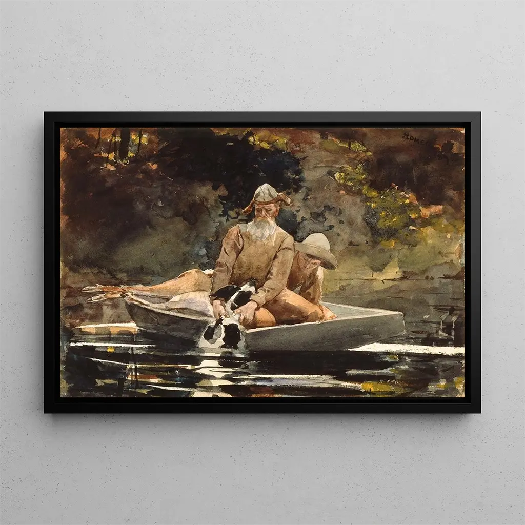 Winslow Homer, né en 1836, est l'un des artistes les plus influents de son époque, connu pour sa représentation réaliste de la vie américaine. Sa carrière a débuté dans le domaine de l'illustration, mais il s'est rapidement tourné vers la peinture, explorant divers thèmes allant de la vie rurale à la mer. Influencé par le mouvement impressionniste et les paysages de la nature, Homer a su capturer l'essence de l'expérience humaine à travers ses œuvres. "Après la chasse" s'inscrit dans une période où l'art américain commence à se définir, se détachant des influences européennes pour embrasser une identité propre, marquant ainsi une étape cruciale dans l'histoire de l'art.