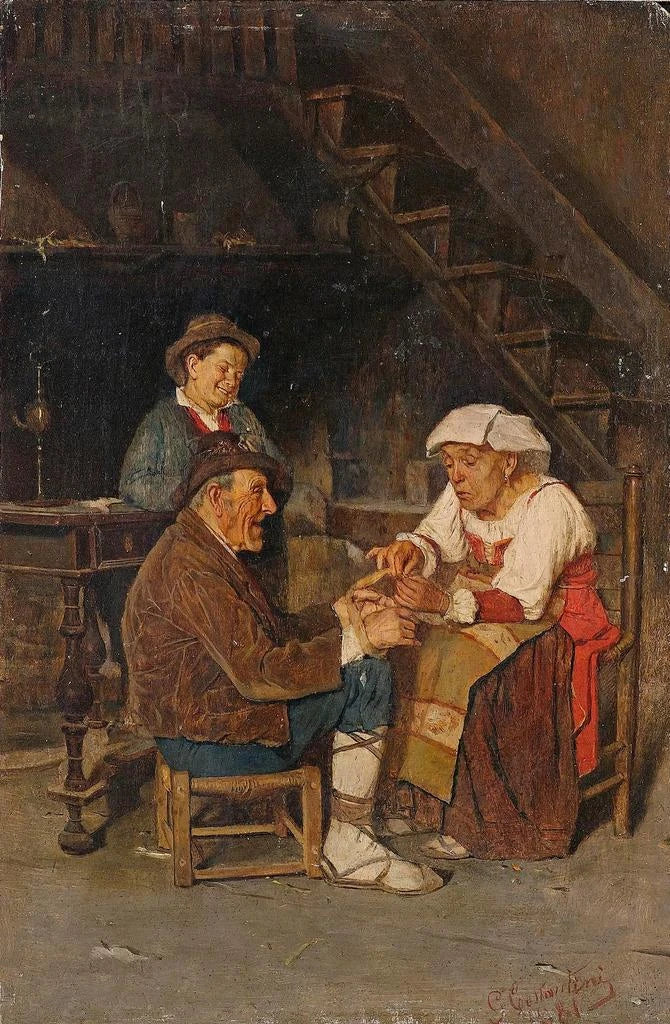Giuseppe Costantini, 1800-luvulla aktiivinen, on tunnettu esityksistään arjen kohtauksista, joissa korostuvat usein unohdetut ammatit. Hänen teoksensa "Aide pour la dentellière" kuvaa täydellisesti hänen sitoutumistaan taltioida tavallisen elämän hetkiä erityisellä herkkyydellä. Realismin liikkeestä vaikutteita saanut Costantini on osannut vangita yksinkertaisten eleiden ja käsityöperinteiden kauneuden. Hänen työnsä on arvokas todistus hänen aikakaudestaan, tarjoten katsauksen arvoihin ja käytäntöihin, jotka muovasivat italialaista yhteiskuntaa.
