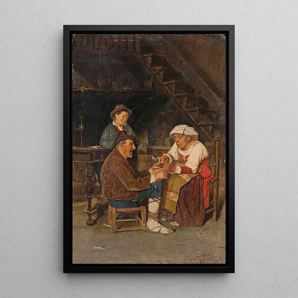 "**Aide pour la dentellière**" Giuseppe Costantinin teos juhlistaa hienostuneisuutta ja tarkkuutta käsityötyössä. Kompositio esittää keskittyneen pitsinnyplääjän, ympärillään langat ja monimutkaiset kuviot, vangiten hänen taiteensa ytimen. Hellävaraiset värit ja valon leikit luovat rauhallisen tunnelman, joka edistää keskittymistä. Jokainen yksityiskohta on huolellisesti toteutettu, osoittaen taiteilijan taitoa esittää paitsi aihe, myös siihen liittyvä tunne. Tämä taulu kutsuu katsojan arvostamaan käsityön kauneutta ja kärsivällisyyttä, jota se vaatii.