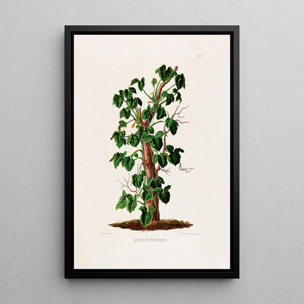 Aroideae Maximilianae Pl17 -taidegrafiikka on todellinen kunnianosoitus trooppisen kasviston rikkauksille. Tämä teos, joka on toteutettu poikkeuksellisella kasvitieteellisellä tarkkuudella, esittelee reheviä lehtiä kirkkaissa vihreissä sävyissä, viitaten trooppisen viidakon raikkauteen. Lehtien suonien yksityiskohtaiset yksityiskohdat ja varjojen hienostuneisuus luovat lähes elävän ilmapiirin, kuljettaen katsojan luonnon sydämeen. Vesiväritekniikka, yhdistettynä poikkeukselliseen ammattitaitoon, antaa tälle kankaalle keveyttä ja läpinäkyvyyttä, jotka vangitsevat silmän ja mielen.