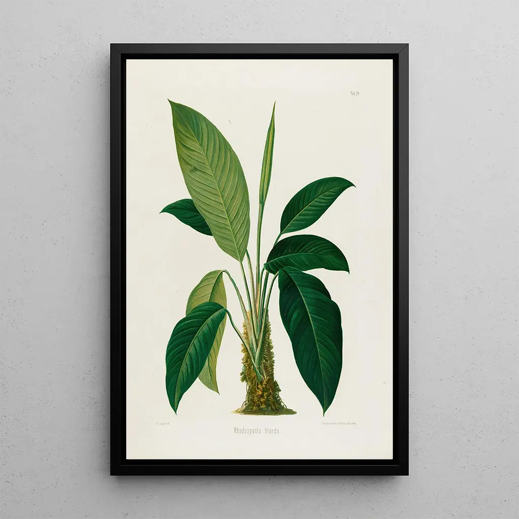 L teos "Aroideae Maximilianae Pl29" Heinrich Wilhelm Schottilta on kiehtova kuvaus, joka vangitsee tämän trooppisen kasvin herkkänsävyisen kauneuden. Lehtien yksityiskohtaiset vivahteet, niiden kirkkaat vihreän sävyt ja monipuoliset tekstuurit, luovat elävän ja immersiivisen tunnelman. Vesiväritekniikka, joka on käytetty tarkasti, mahdollistaa lehtien läpinäkyvyyden ja varjojen rikkauden esittämisen, tarjoten visuaalisen syvyyden, joka vetää katseen puoleensa. Tämä taidegrafiikka on todellinen kutsu tutkia kasvi-maailmaa, jossa jokainen elementti vaikuttaa olevan elossa.