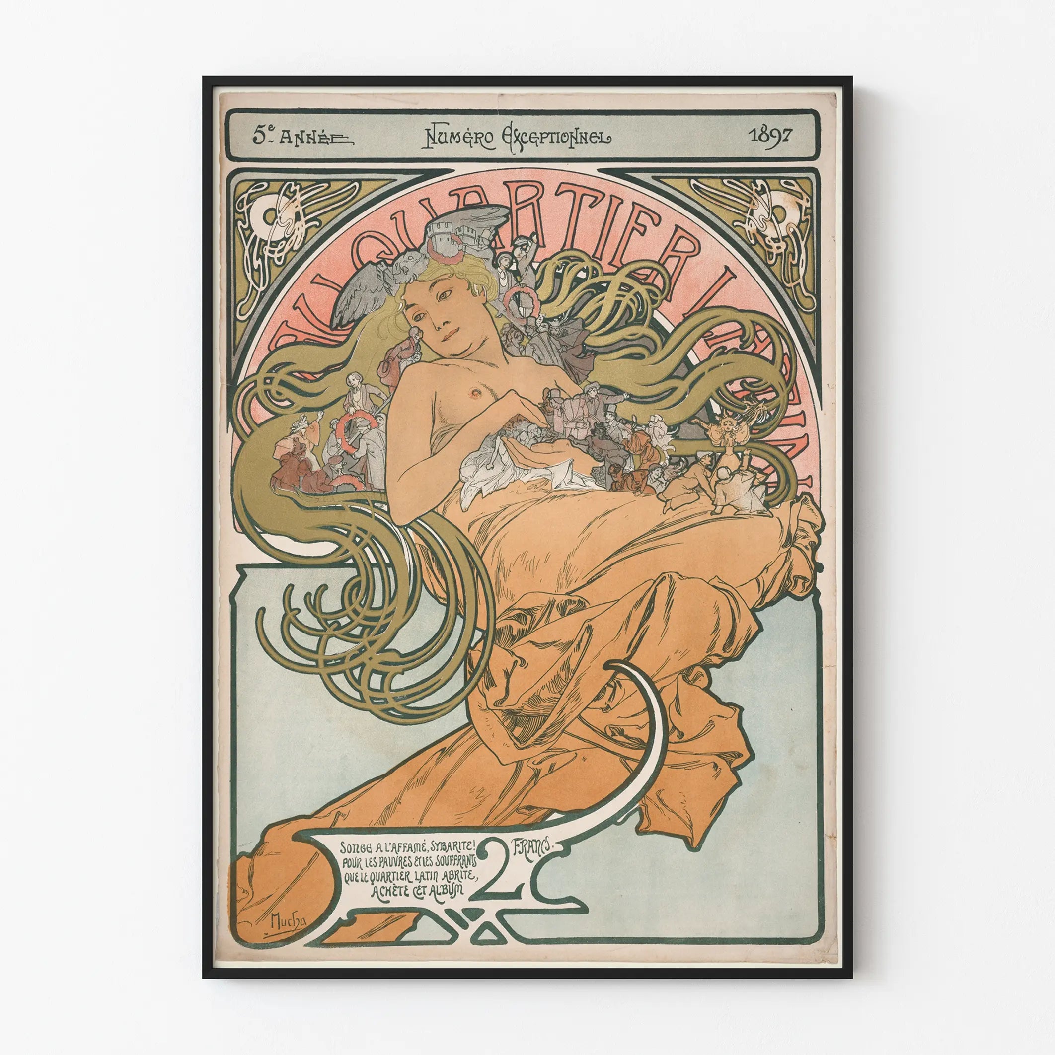 Art Nouveau -juliste Latin-alue 1897 - vintage-seinän koriste