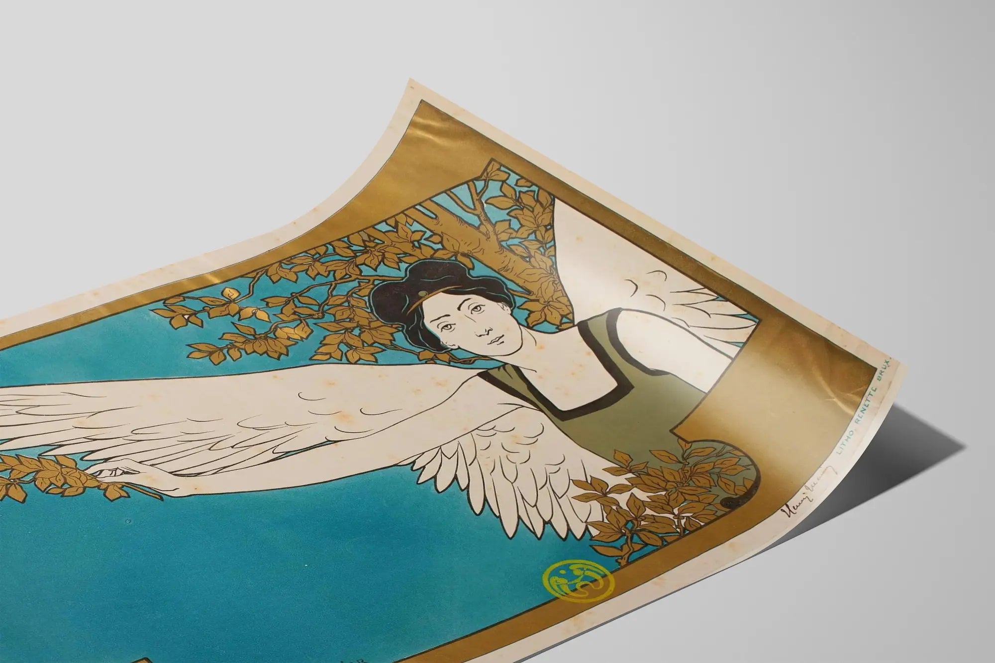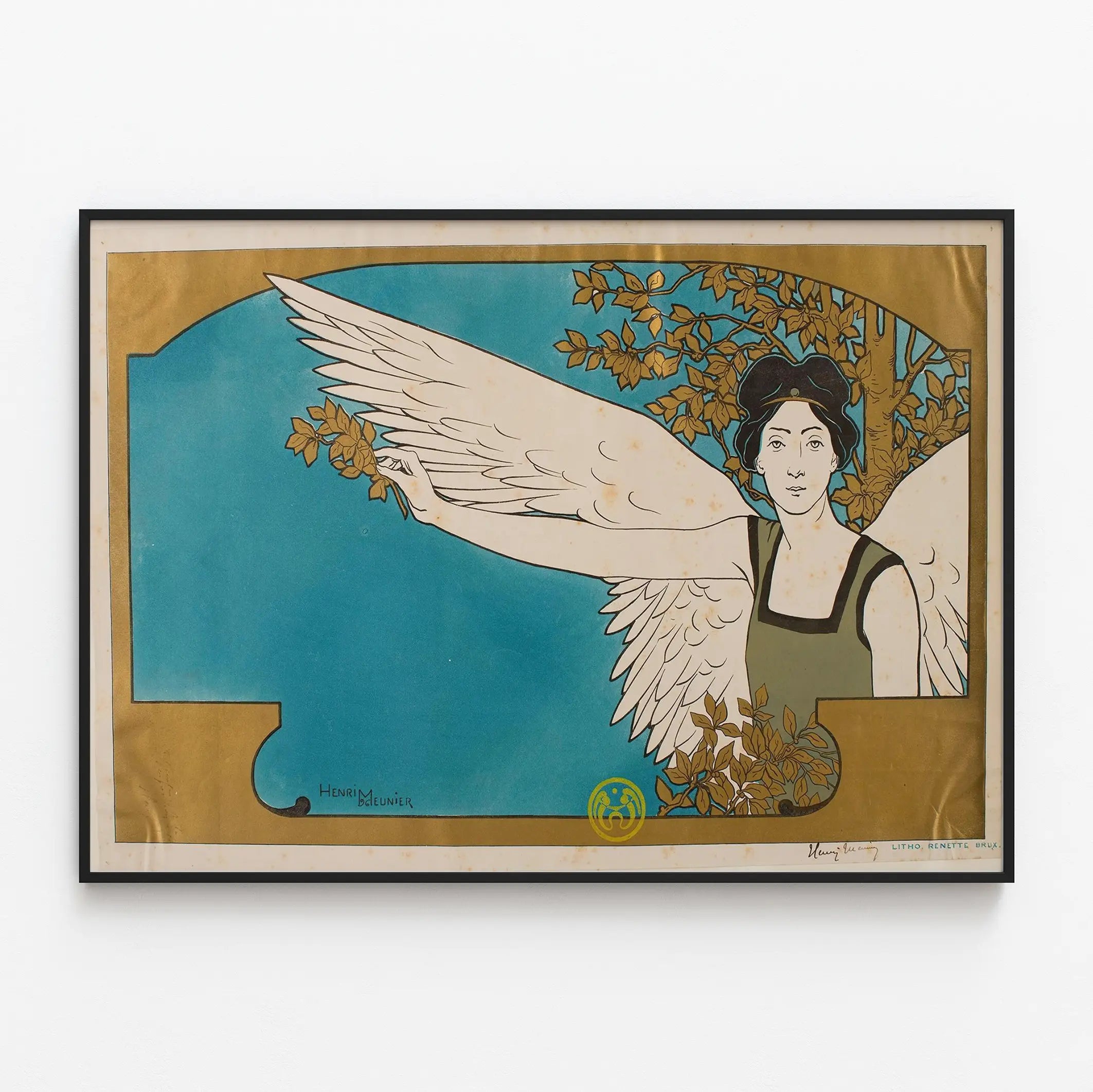 Tutustu tähän eleganttiin Art Nouveau -julisteeseen nimeltä 'Le Guide Musical', joka on Henri Meunierin signeeraama koristeellinen seinätaideteos. Tämä juliste esittää siivekästä naisfiguuria, inspiraation ja muusan symbolia, erottuen taustasta, joka on kirkas sininen ja kehystetty kultaisin kehyksin. Graafinen tyyli, joka on tyypillinen 1900-luvun alulle, yhdistää hienostuneita linjoja ja harmonisia väriyhdistelmiä, tarjoten visuaalisen vaikutelman, joka on sekä hillitty että hienostunut. Tämä litografialla painettu seinäkoriste on ikonisinen esimerkki Art Nouveau -ajasta, ja se sopii erinomaisesti taiteen ja musiikin ystäville, jotka haluavat koristaa sisätilojaan persoonallisella ja visuaalisesti runsaalla julisteella. Kehystettynä tämä teos tuo ripauksen eleganssia ja historiaa mihin tahansa huoneeseen, olipa kyseessä olohuone, toimisto tai musiikkihuone. Taiteellisesti tasapainoinen koostumus, jossa figuurin hienostuneisuus kohtaa luonnon vahvan läsnäolon, tekee siitä katseenvangitsijan ja kutsuu mietiskelyyn. Valitse tämä 'Le Guide Musical' -juliste tuodaksesi vintage-henkeä ja kulttuurista tunnelmaa seinäkoristeluusi, samalla korostaen perinteisen taiteen hienostunutta käsityötä. Tämä juliste viehättää kaikkia, jotka arvostavat graafisen taiteen ja luonnon elementtien yhdistelmää, korostettuna ainutlaatuisella ja ajattomalla tyylillä.
