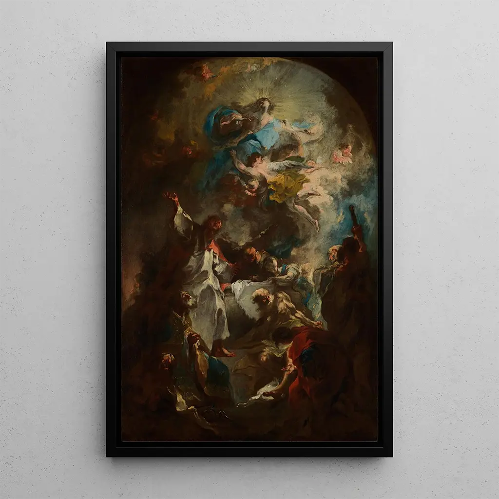 L'Assomption de Marie, Franz Anton Maulbertschin ikoninen taidegrafiikka, erottuu rohkeasta värien ja valon käytöstä. Kangas levittää elävän taivaan, jossa kultaiset ja sinertävät sävyt kietoutuvat toisiinsa, luoden taivaallisen tunnelman. Neitsyen ja enkeleiden hahmot, kauniisti toteutettuina, näyttävät leijuvan kohoavassa liikkeessä, symboloiden henkistä kohoamista. Maulbertschin tekniikka, joka on luonteeltaan dynaattisia siveltimen vetoja ja harmonista sommittelua, kutsuu syvälliseen ja emotionaaliseen pohdintaan. Jokainen yksityiskohta, kankaiden laskokset ja ilmeet, lisää ihmetystä tähän pyhään kohtaukseen.