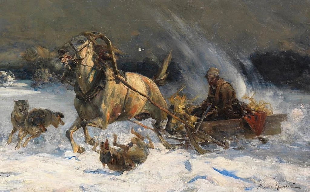 Attaque des loups - Alfred von Wierusz-Kowalski