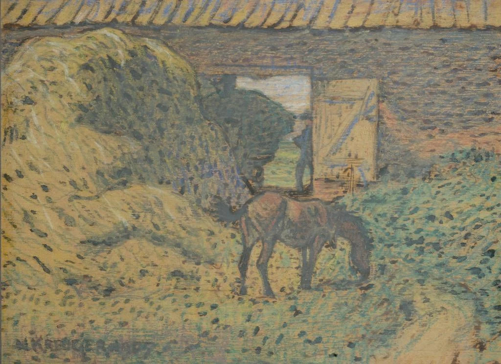 Nils Kreuger, ruotsalainen 1900-luvun alun taidegrafiikan mestari, on kuuluisa maisemien ja arkipäivän kohtauksien esittämisestä. Hän on saanut vaikutteita impressionistiliikkeestä ja osaa yhdistää valon ja värin elementtejä, jotka määrittelevät hänen ainutlaatuisen tyylinsä. Kreuger on usein tutkinut pohjoismaisten maisemien kauneutta, pyrkien välittämään tunteen ja tunnelman aiheistaan. Hänen taidegrafiikkansa Au grenier à foin on tyypillinen hänen lähestymistavalleen, yhdistäen realismia ja runoutta, ja osoittaen hänen kiintymystään luontoon ja maaseudun elämään.
