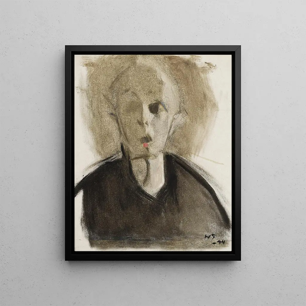 Itsekuvaus punaisella läiskällä - Helene Schjerfbeck
