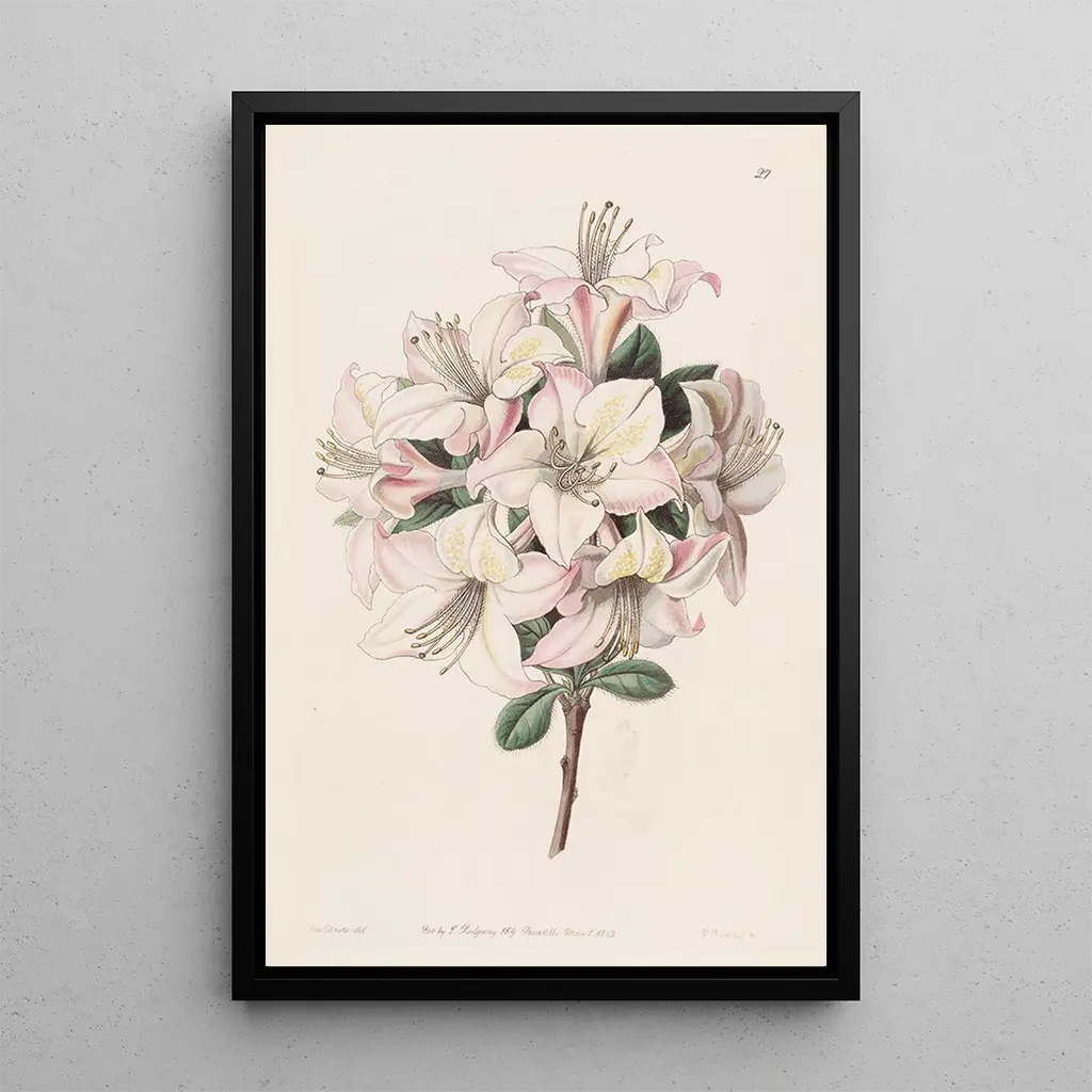 Sydenham Edwards, joka toimi 1800-luvun alussa, tunnetaan tärkeästä roolistaan kasvitieteen taiteen kehityksessä. Hän sai vaikutteita aikansa tieteellisistä löydöksistä ja osasi yhdistää tarkkuuden ja estetiikan teoksissaan. Edwards teki yhteistyötä kasvitieteilijöiden ja tiedemiesten kanssa, mikä antoi hänelle mahdollisuuden tutkia laajasti kasveja ja kukkia. Hänen tyylinsä, joka on tunnusomaista huolellisesta yksityiskohtien huomioimisesta, on jättänyt pysyvän jäljen kukkamaailman taiteeseen. L'Azalée Highclere todistaa hänen ainutlaatuisesta lahjakkuudestaan ja sitoutumisestaan luonnon uskolliseen esittämiseen.