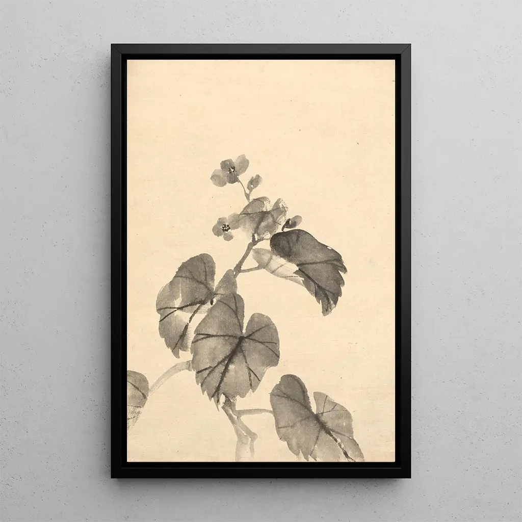 Bégonia-oksan oksissa: luonnonkauneuden juhla Kono Bairein taidegrafiikkaa "Bégonia-oksan oksissa" on herkkä teos, joka herättää luonnon eleganssin ja rauhan. Pastellivärit, pehmeästä vaaleanpunaisesta lempeään vihreään, sulautuvat harmonisesti luoden rauhoittavan ilmapiirin. Japanilaiselle koulukunnalle tyypillinen muste paperille -tekniikka mahdollistaa yksityiskohtien, kuten terälehtien ja lehtien, tarkkanäköisen tallentamisen, herättäen tämän kukkakuvion eloon. Jokainen sivellinvedos vaikuttaa tanssivan taululla, kutsuen katsojan hiljaiseen ja mietiskelevään pohdintaan. Kono Bairei: japanilaisen kukkataiteen mestari Kono Bairei, joka toimi Meiji-ajalla, tunnetaan panoksestaan kukkien ja lintujen maalauksen taiteeseen, joka on perinteinen japanilainen genre. Hän sai vaikutteita ukiyo-e-tekniikoista ja osasi yhdistää perinteen ja innovoinnin, tuoden uutta ulottuvuutta kukkakuvaukseen. Hänen tuottelias uransa teki hänestä aikansa ikonisen hahmon, ja hänen teoksensa inspiroivat yhä nykytaiteilijoita. Yhdistämällä luonnon elementtejä poikkeuksellisen tarkasti, Bairei onnistui ikuistamaan kukkien ohikiitävän kauneuden, tehden taidegrafiikoistaan pakollisia kokoelman osia taiteen ystäville. Monipuolinen sisustuselementti Taidegrafiikkaa "Bégonia-oksan oksissa" on ihanteellinen sisustuselementti, joka kaunistaa minkä tahansa tilan, olipa kyseessä olohuone, toimisto tai makuuhuone. Sen tulostuslaatu ja uskollisuus alkuperäisteoksen yksityiskohdille tekevät siitä ensisijaisen valinnan japanilaisen taiteen ystäville. Tämän taulun esteettinen viehätys piilee sen kyvyssä tuoda luonnon ja rauhan tunnelma sisätiloihisi. Valitsemalla tämän taidegrafiikan, valitset taulun, joka ei ainoastaan rikastuta sisustustasi, vaan myös luo syvän yhteyden luonnonkauneuteen.