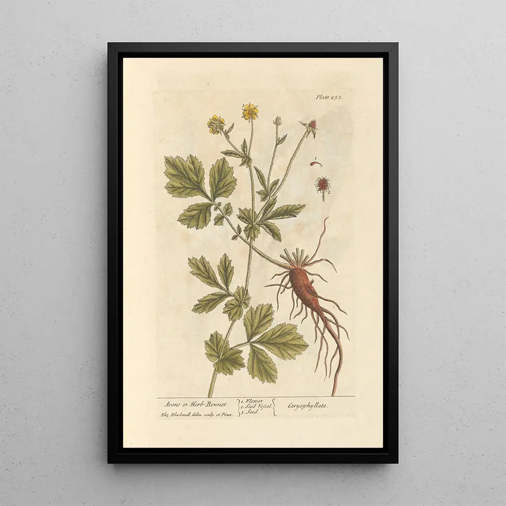 Elizabeth Blackwellin taidegrafiikka Benoîte tai Saint-Benoîtin yrtti on kiehtova teos, joka juhlistaa lääkekasvien kauneutta. Kultaiset ja vihreät sävyt sekoittuvat harmonisesti, luoden elävän taulun, joka houkuttelee katseen. Blackwellin hallitsema kupargravuuritekniikka mahdollistaa jokaisen yksityiskohdan esittämisen poikkeuksellisen hienovaraisesti. Tämä kangas herättää syvän yhteyden luontoon, kutsuen tutkimaan tämän ikonisen kasvin piilotettuja hyveitä.