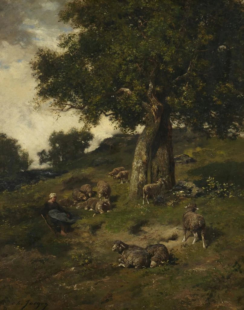 Taidetuloste | Bergère et moutons - Charles Émile Jacque