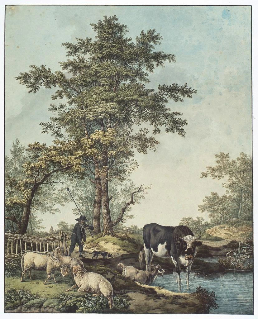 Taidetuloste | Berger avec du bétail au bord d'un lac - Barend Hendrik Thier
