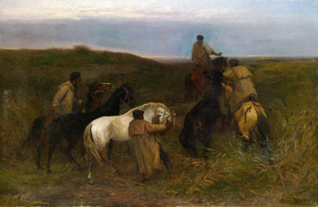 Dans cette œuvre captivante, Otto von Thoren nous transporte au cœur d’un paysage pastoral où des bergers se fondent harmonieusement dans la nature environnante. Les couleurs douces et les nuances de vert évoquent une sérénité apaisante, tandis que la lumière joue avec les ombres, créant une atmosphère de tranquillité. La technique de la peinture à l'huile permet de rendre les détails des personnages et des animaux avec une précision remarquable, tout en offrant une texture riche qui invite à l'exploration visuelle. Ce tableau, véritable ode à la vie rurale, nous invite à une contemplation sereine et à un retour aux sources.
