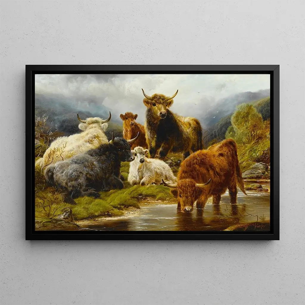 Bétail des Highlands : une ode à la nature sauvage Dans "Bétail des Highlands", Robert Watson nous transporte au cœur des paysages écossais. Cette œuvre, riche en détails, dépeint des bovins majestueux évoluant dans un environnement naturel époustouflant. Les couleurs terreuses dominent, évoquant la robustesse des animaux et la beauté des collines verdoyantes. La technique de l'artiste, mêlant réalisme et impressionnisme, confère à la scène une atmosphère vivante et authentique. Les jeux de lumière et d'ombre ajoutent une profondeur saisissante, rendant presque palpable la brise fraîche des Highlands. Chaque coup de pinceau semble raconter une histoire, celle d'une vie rurale en harmonie avec la nature. Robert Watson : un témoin de la vie rurale écossaise Robert Watson, actif à la fin du XIXe siècle, est reconnu pour ses représentations de la vie rurale et des paysages écossais. Influencé par le mouvement artistique du réalisme, il cherche à capturer la beauté brute de la nature et la simplicité de la vie paysanne. Ses œuvres, souvent empreintes de nostalgie, témoignent d'une époque où la relation entre l'homme et son environnement était essentielle. Watson, à travers ses tableaux, nous invite à redécouvrir la splendeur des paysages écossais et à apprécier la richesse de la faune locale. Son héritage artistique perdure, inspirant de nombreux artistes contemporains à explorer les thèmes de la nature et de la ruralité. Une acquisition décorative aux multiples atouts La reproduction "Bétail des Highlands" est une pièce décorative qui saura enrichir votre intérieur, que ce soit dans un salon, un bureau ou une chambre. Sa qualité d'impression garantit une fidélité remarquable aux détails de l'œuvre originale, permettant de profiter de l'atmosphère paisible qu'elle dégage. Ce tableau apporte une touche d'authenticité et de chaleur à votre décoration, tout en évoquant la beauté des paysages écossais. En choisissant cette toile, vous optez pour un élément décoratif qui ne manquera pas d'attirer l'œil et de susciter des conversations autour de l'art et de la nature.