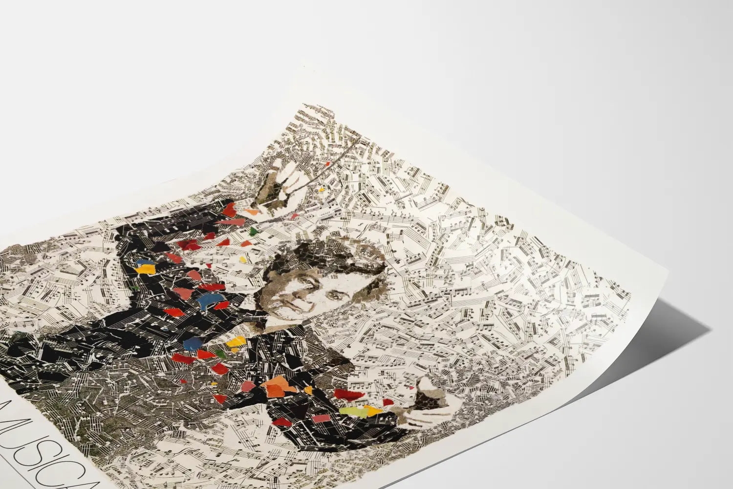 Tämä Boston Musica Viva -juliste tarjoaa ainutlaatuisen ja hienostuneen seinäkoristeen, joka sopii erinomaisesti musiikin ja taiteen ystäville. Juliste esittää tyylitellyn muotokuvan kapellimestarista, joka johtaa orkesteria, koostuen nuottimosaikista. Huolellisesti leikatuista musiikkiviivoista ja värikkäistä fragmentteista muodostuva kollaasiefekti luo dynaamisen ja elävän visuaalisen vaikutelman, joka on sekä elegantti että ilmeikäs.