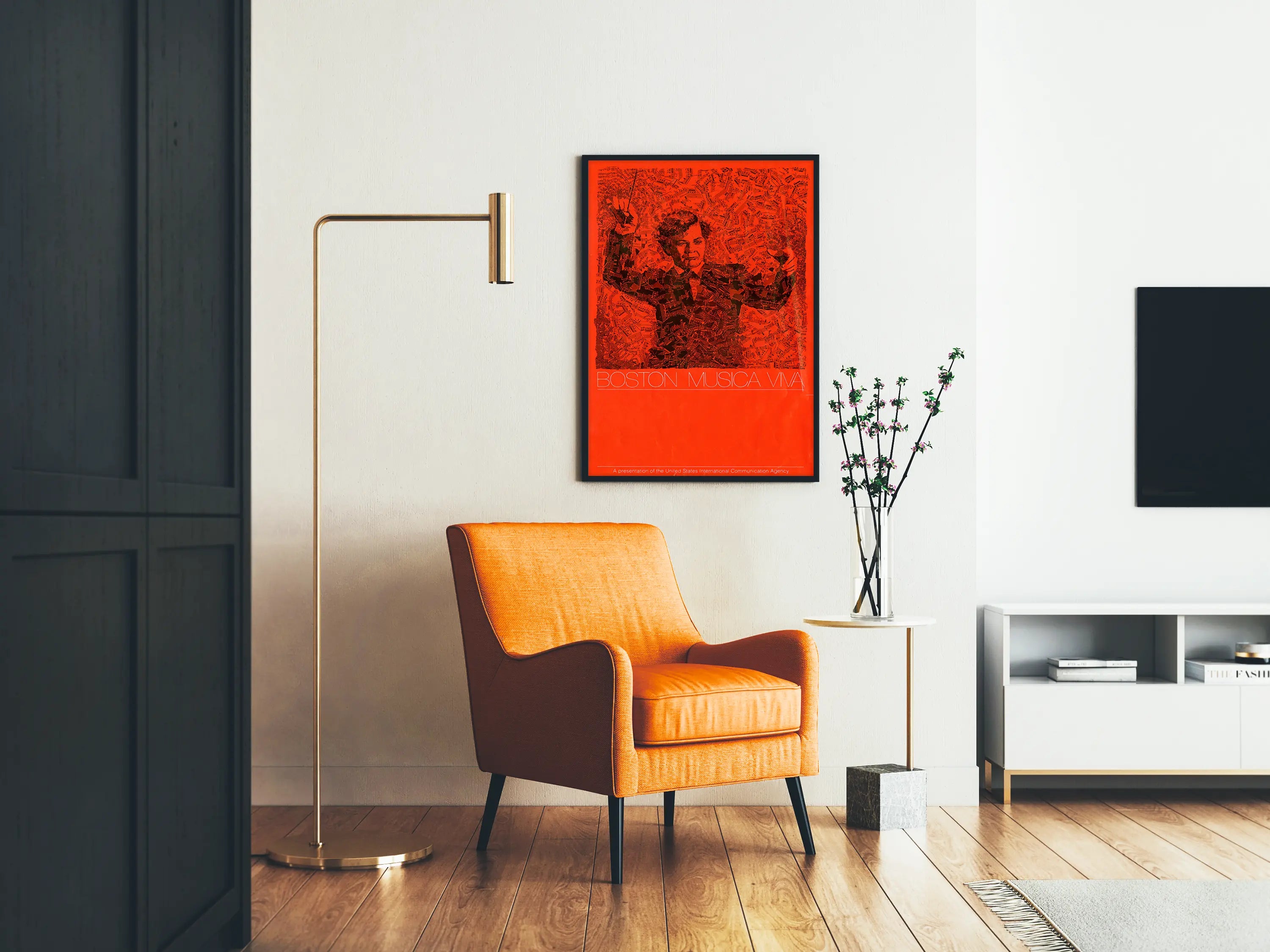 Tämä Boston Musica Viva -juliste on ainutlaatuinen seinäkoriste, joka yhdistää eleganssin ja omaleimaisuuden. Keskuskuva esittää kapellimestaria johtamassa orkesteria taiteellisesti kuvattuna, musiikkilevyjen kuvioina, jotka on painettu mustalla kirkkaanpunaiselle taustalle. Tämä kirkkaiden ja rohkeiden värien kontrasti luo voimakkaan visuaalisen vaikutelman, mikä tekee siitä täydellisen seinäelementin, jossa on luonnetta ja musiikillista intohimoa. Juliste yhdistää graafisen taiteen musiikkimaailmaan hienovaraisen musiikkipäiväkirjojen sisällyttämisen kautta kapellimestarin siluettiin, mikä ilahduttaa sekä musiikin harrastajia että sisustuksen ystäviä. Teksti "BOSTON MUSICA VIVA" valkoisilla ohuilla kirjaimilla korostaa musiikkiaihetta tuoden kokonaisuuteen modernin ja hillityn ilmeen. Tämä seinäkoriste sopii erinomaisesti olohuoneeseen, toimistoon tai konserttisaliin, lisäten dynaamisen ja kulttuurisen tunnelman. Se on ihanteellinen juliste musiikkitiloihin tai keräilyesine musiikkia inspiroituneen taiteen ystäville. Epätavallisen muotoilunsa ja huolellisten yksityiskohtiensa ansiosta tämä juliste herättää eloon elävän musiikin hengen voimakkaan graafisen tulkinnan kautta, tehden tästä julisteesta merkittävän koristevalinnan kaikkiin taiteellisiin tiloihin.