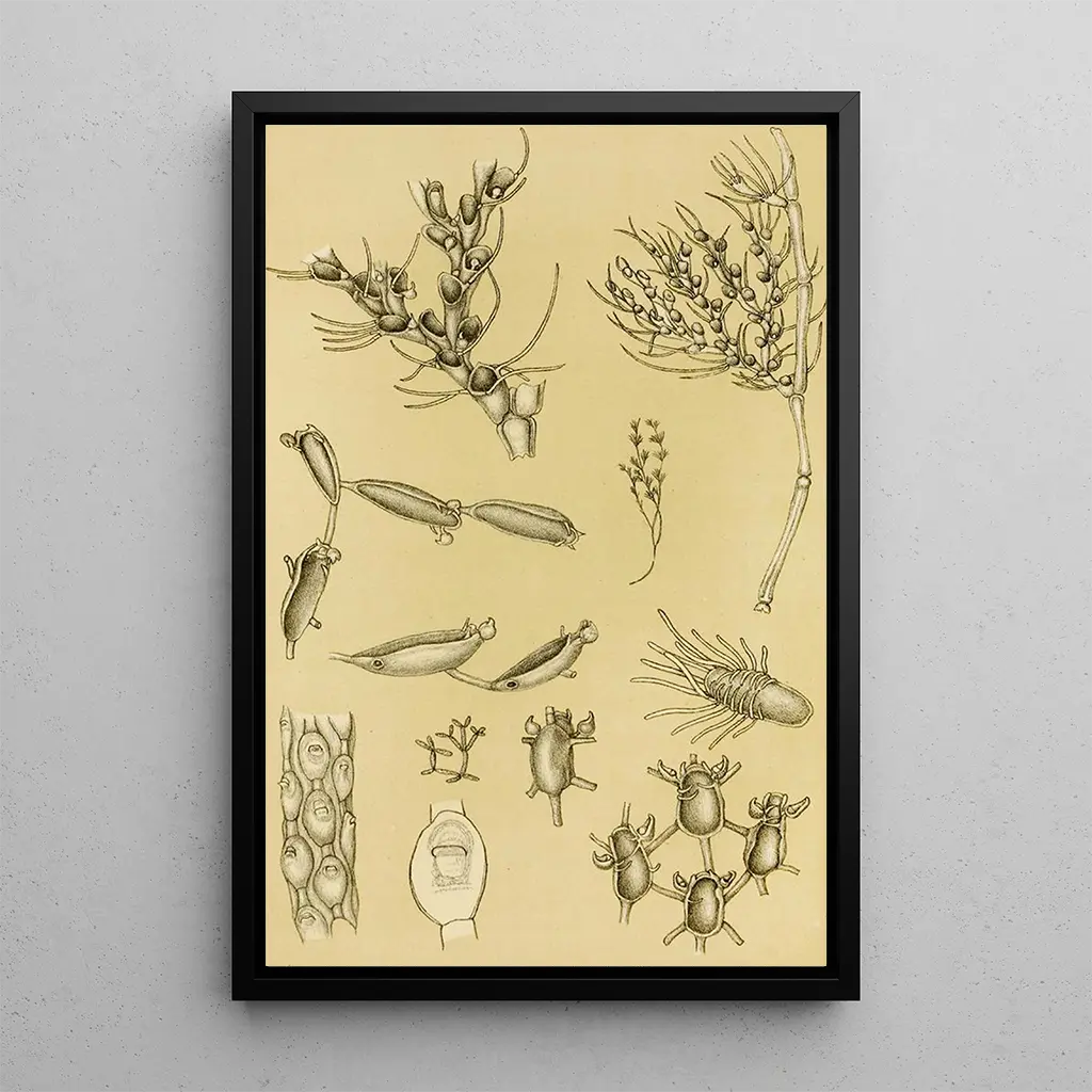 Taidegrafiikkaa Bryozoaires XVI -teoksesta sukellamme kiehtovaan universumiin, jossa muotojen herkkä yksityiskohtaisuus ja värien rikkaus kietoutuvat luodakseen vangitsevan taideteoksen. Näiden merenelävien, usein vähän tunnettuja organismeja, yksityiskohtaiset piirteet korostuvat pehmeiden ja luonnollisten sävyjen paletilla. Frederick McCoyn käyttämä kaiverrustekniikka antaa tälle taululle sekä tieteellisen että taiteellisen tunnelman, kutsuen katsojan tutkimaan merenalaisen elämän salaisuuksia. Jokainen elementti vaikuttaa kertovan tarinan, paljastaen näiden vesieläinten piilotetun kauneuden.