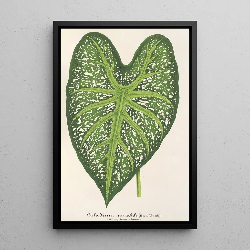 Le tableau Caladium mirabile de Charles Antoine Lemaire on todellinen ylistys luonnolle. Värikkäiden lehtien, jotka vaihtelevat kirkkaan vihreästä herkkään roosaan, vaikuttaa hehkuvan valossa. Taiteilijan tekniikka, joka yhdistää vesiväriä ja piirrosta, herättää tämän trooppisen kasvin eloon, tehden siitä lähes tuntuvan. Tämän teoksen välittämä tunnelma on sekä rauhoittava että lumoava, kutsuen katsojan sukeltamaan luonnonkauneuden maailmaan. Jokainen yksityiskohta, jokainen sävy, kertoo syvästä rakkaudesta kasvitieteeseen ja poikkeuksellisesta värien hallinnasta.