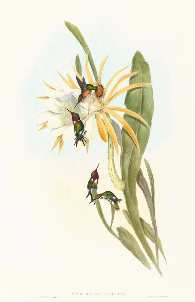 John Gould, kuuluisa 1800-luvun lintutaiteistaan, jätti jälkensä aikakauteensa ainutlaatuisella lähestymistavallaan taiteeseen ja tieteeseen. Matkustaessaan ympäri maailmaa hän onnistui vangitsemaan lintujen monimuotoisuuden teoksiinsa, yhdistäen tieteellisen tarkkuuden ja estetiikan. Gouldia inspiroivat aikansa löydökset, ja hän osallistui lintutieteen suosioon. Hänen teoksensa, kuten Calothorax heliodori, ovat tulleet luonnontieteilijöiden ja taiteilijoiden viitteiksi, todistaen hänen poikkeuksellista lahjakkuuttaan ja omistautumistaan luonnolle.