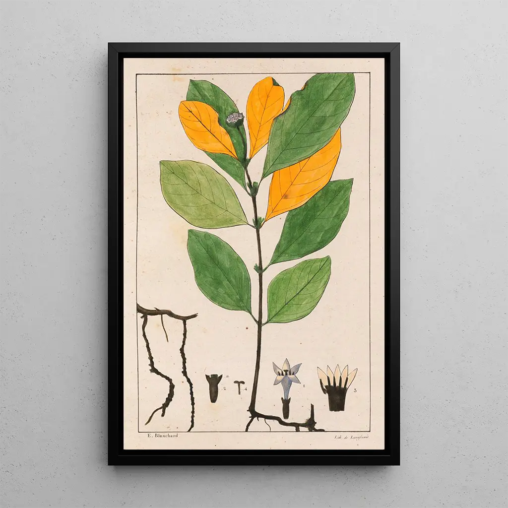Cepaelis Ipecacuanha : kiehtova kasvitieteellinen tutkimus L taidegrafiikka Cepaelis Ipecacuanha johdattaa meidät maailmaan, jossa luonto paljastuu hienovaraisesti. Vihreän, keltaisen ja ruskean sävyt sekoittuvat harmonisesti, luoden sekä rauhoittavan että kiehtovan ilmapiirin. Akvarellitekniikka, jota käytti Auguste de Saint-Hilaire, mahdollistaa lehtien keveyden ja varren tekstuurin vangitsemisen. Jokainen yksityiskohta on huolellisesti toteutettu, kutsuen katsojan tarkkailemaan tätä lääkekasvia huolella. Tämä taideteos, todellinen ylistys biodiversiteetille, muistuttaa luonnon tärkeydestä arjessamme. Auguste de Saint-Hilaire : kasvitieteellisen kuvittamisen pioneeri Auguste de Saint-Hilaire, 1800-luvun kasvitieteilijä ja kuvittaja, omisti elämänsä kasvien tutkimukselle, erityisesti Etelä-Amerikassa. Aikansa tieteellisten löytöjen inspiroimana hän osasi yhdistää tieteellisen tarkkuuden ja taiteellisen herkkyyden. Hänen teoksensa, kuten tämä taidegrafiikka Cepaelis Ipecacuanha, todistavat hänen sitoutumisestaan trooppisen kasviston dokumentointiin. Saint-Hilaire oli keskeisessä roolissa kasvitietämyksen levittämisessä, ja hänen kuvansa ovat tulleet viitteiksi tutkijoille ja taiteen ystäville. Hänen perintönsä elää edelleen, muistuttaen luonnon merkityksestä taiteessa ja tieteessä. Monipuolinen koristeellinen hankinta Cepaelis Ipecacuanha -taidegrafiikka on koristeellinen kappale, joka kaunistaa sisustustasi, olipa kyseessä olohuone, toimisto tai makuuhuone. Tulostuslaatu takaa alkuperäisten yksityiskohtien uskollisuuden, jolloin voit arvostaa tämän kasvitieteellisen teoksen kauneutta täysin. Tämän kankaan esteettinen viehätys piilee värien harmoniassa ja realistisessa esityksessä, tuoden luonnon osaksi sisustustasi. Valitsemalla tämän taidegrafiikan, valitset teoksen, joka yhdistää kulttuurin, tieteen ja taiteen, rikastaen samalla elinympäristöäsi rauhan tunteella.