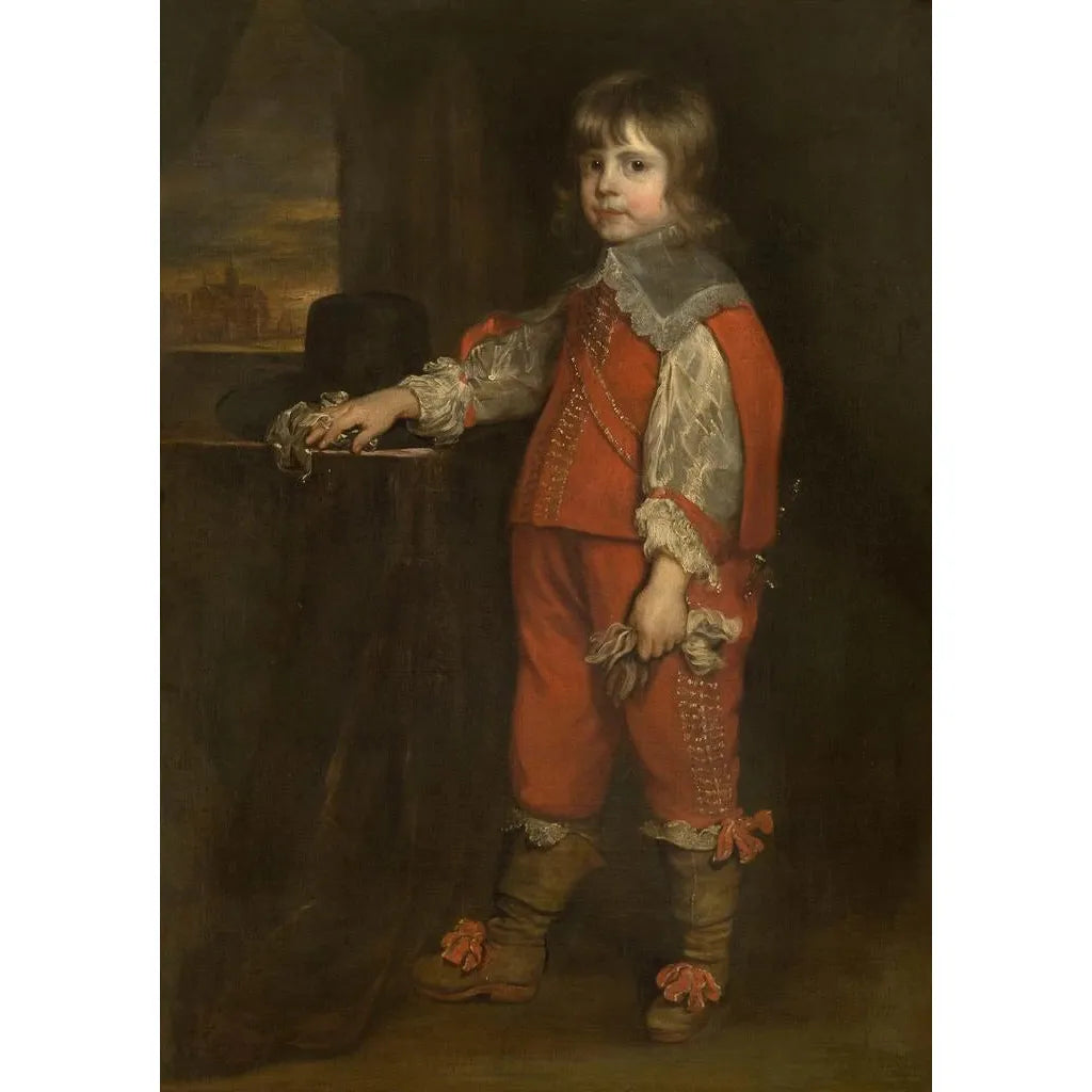 Charles II L tant que Prince de Galles : un portrait emblématique de la royauté. Cette œuvre d'Adriaen Hanneman capture la jeunesse et le charisme de Charles II, alors qu'il était encore Prince de Galles. Le tableau dépeint le prince dans un costume richement orné, mettant en avant des détails minutieux et des couleurs éclatantes qui soulignent son statut royal. La pose confiante et le regard déterminé de Charles II transmettent une impression de puissance et de dignité, tout en évoquant l'espoir et l'ambition d'un futur roi. L'atmosphère de ce portrait est à la fois majestueuse et intime, invitant le spectateur à contempler la personnalité de ce personnage historique.