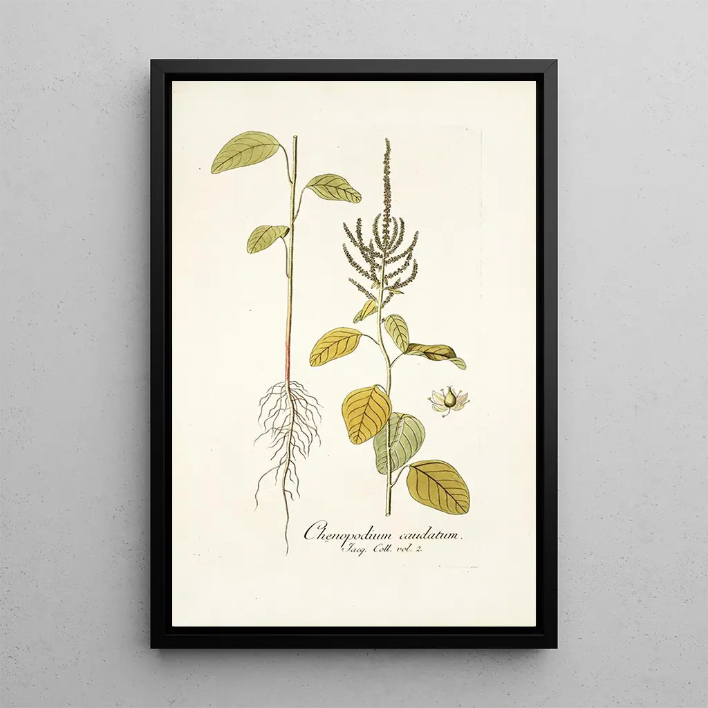 Chenopodium caudatumin taidegrafiikka on erinomainen koristevalinta rikastuttamaan asuintilaasi. Olipa kyseessä olohuone, toimisto tai makuuhuone, tämä taulu tuo mukanaan luonnon ja rauhan tunteen. Tulostuksen laatu takaa teoksen yksityiskohtien uskollisuuden, jolloin voit täysin arvostaa tämän kasvin kauneutta. Sen elegantti ulkonäkö ja rauhoittavat värit sopivat täydellisesti kaikkiin sisustustyyleihin, lisäten taiteellista ulottuvuutta sisätiloihisi.