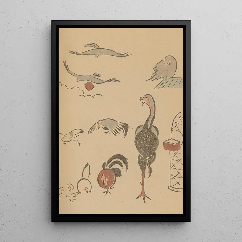 La taidegrafiikka de Choju ryakugashiki Pl19 vie meidät eloisaan maailmaan, jossa japanilainen fauna ja flora kukoistavat loistokkaasti. Värikkäät sävyt ja yksityiskohtaiset eläimet ja kasvit luovat elävän ja dynaamisen ilmapiirin. Ukiyo-e-tekniikka, hienovaraisine viivoineen ja hienovaraisine sävyvaihteluineen, mahdollistaa kunkin esitetyn olennon keveyden ja eleganssin kokemisen. Tämä teos kutsuu syvälliseen luonnon immersion, juhlistaa ympäröivää biodiversiteettiä ja tarjoaa samalla rauhan ja mietiskelyn tunteen.
