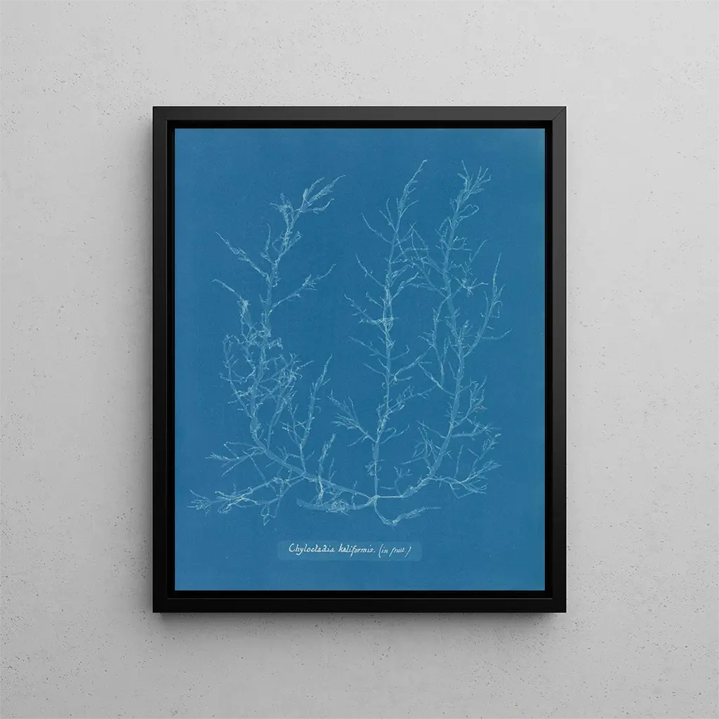 Taidetuloste Chylocladia kaliformis hedelmissä - Anna Atkins – Johdanto kiehtova Kuvankauniissa taiteen historiassa jotkin teokset erottuvat kyvyllään vangita luonnon olemus tarkkuudella ja hienostuneisuudella, joita harvoin tavataan. Taidetuloste Chylocladia kaliformis hedelmissä - Anna Atkins on täydellinen esimerkki tästä. Tämä ikoninen teos, joka on valmistettu 1800-luvulla, edustaa tieteellisen valokuvauksen nousua samalla kun se juhlistaa orgaanisten muotojen kauneutta. Anna Atkins, valokuvauksen pioneeri taiteellisena keinona, onnistui yhdistämään tieteen ja estetiikan teoksessaan, joka ylittää pelkän visuaalisen dokumentin. Tutkiessaan tätä luomusta, sukellamme keskusteluun taiteen ja luonnon välillä, jossa jokainen yksityiskohta paljastuu huolellisesti. Teoksen tyyli ja ainutlaatuisuus Tämän teoksen ainutlaatuisuus piilee sen innovatiivisessa lähestymistavassa kasvitieteelliseen esitystapaan. Anna Atkins, käyttäen cyanotype-tekniikkaa, loi syvyyttä, jota ei ole koskaan aiemmin saavutettu. Sinisten sävyjen hehku, jotka tulevat esiin Chylocladia kaliformis hedelmissä, luovat sekä rauhallisen että salaperäisen tunnelman. Sävellys, huolellisesti suunniteltu, kutsuu katsojan pysähtymään muotojen ja tekstuurien yksityiskohtiin. Jokainen elementti, jokainen varjo, on suunniteltu korostamaan kasvin sisäistä kauneutta. Tämä teos ei ainoastaan dokumentoi; se nostaa aiheen taiteelliselle tasolle, muuttaen yksinkertaisen kasvitieteellisen tutkimuksen todelliseksi luonnon juhlistukseksi. Taiteilija ja hänen vaikutuksensa Anna Atkins, usein ensimmäisenä naisvalokuvaajana pidetty, jätti jälkensä aikakauteensa rohkeudellaan ja visionsa. Hänen kiinnostuksensa kasvitieteeseen, yhdistettynä tekniseen asiantuntemukseensa, mahdollisti teoksen luomisen, joka ylittää pelkän tieteellisen kuvituksen rajat. Ottamalla valokuvauksen osaksi taidetta, hän avasi tien monille sukupolville taiteilijoita ja tiedemiehiä. Hänen vaikutuksensa tuntuu yhä tänään, kun uudelleen arvostamme luonnon merkitystä taiteellisessa käytännössä. Hänen työnsä ei vain rikastuttanut valokuvauksen maailmaa, vaan herätti myös uudelleen kiinnostuksen luonnontieteisiin, todistaen, että taide voi olla voimakas tiedon ja tietoisuuden levittäjä. Erityinen seinäkoriste, jonka on suunnitellut Artem Legrand