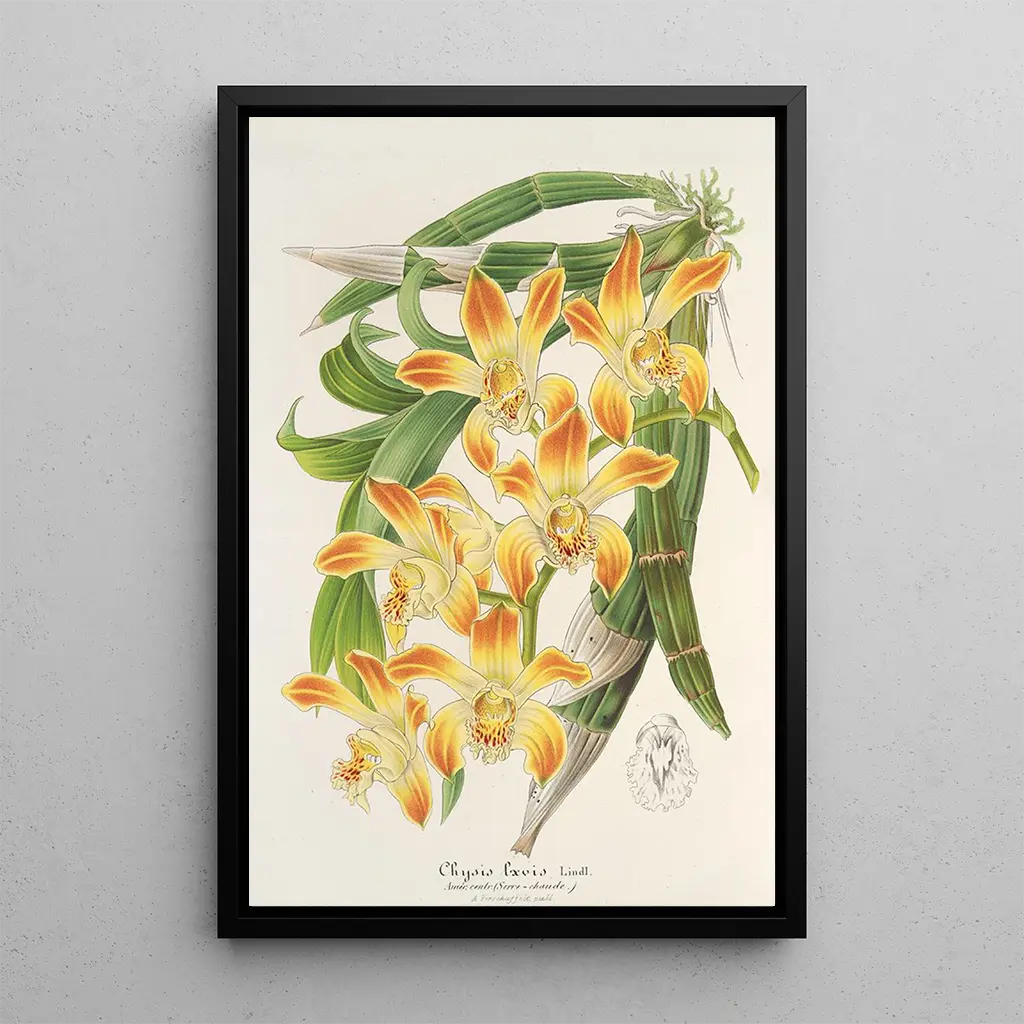 Chysis lævis : houkutteleva kukkiva tanssi Chysis lævis, Charles Antoine Lemaire'n elävä teos, herättää orchidien herkkää kauneutta. Loistavat värit, jotka vaihtelevat kirkkaasta keltaisesta syvään punaiseen, sekoittuvat harmonisesti, luoden sekä iloisen että rauhoittavan ilmapiirin. Lemairen tekniikka, joka on tunnusomaista yksityiskohtaisuudelle ja hienovaraiselle valolle, herättää jokaisen terälehden eloon, muuttaen tämän kankaan todelliseksi luonnon juhlapuheksi. Teos kutsuu katsojan uppoutumaan kukkivaan maailmaan, jossa jokainen sävy kertoo tarinan ohikiitävästä kauneudesta. Charles Antoine Lemaire : kasvitieteen pioneeri Charles Antoine Lemaire, kasvitieteilijä ja 1800-luvun taiteilija, osasi yhdistää tieteen ja taiteen teoksissaan. Hän oli vaikutteita saanut luonnontieteellisistä virtauksista ja omisti elämänsä kasvien tutkimukselle, erityisesti orkideoille, joita hän esitti poikkeuksellisen tarkasti. Lemaire oli myös aktiivinen Horticultural Society -seurassa, mikä osoittaa hänen sitoutumisensa kasvitieteeseen. Hänen työnsä, vaikka ei olekaan yhtä tunnettu kuin muiden aikalaistensa, on vaikuttanut merkittävästi kukkamaalauksen alaan, luoden sillan tieteellisen havainnon ja estetiikan välille. Monipuolinen koristeellinen hankinta Chysis lævis -taidegrafiikka on ihanteellinen koriste-esine rikastuttamaan sisustustasi, olipa kyseessä olohuone, toimisto tai makuuhuone. Tulostuslaatu takaa uskollisuuden väreihin ja yksityiskohtiin alkuperäisteoksessa, tarjoten esteettistä vetovoimaa. Sisustukseesi lisättynä tämä taidegrafiikka tuo luonnon ja hienostuneisuuden vivahteen, samalla juhlistaen kasvitieteilijän lahjakkuutta. Tämä taidegrafiikka miellyttää taiteen ja kasvitieteen harrastajia ja luo lämpimän ja kutsuvan tunnelman asuintilaasi.