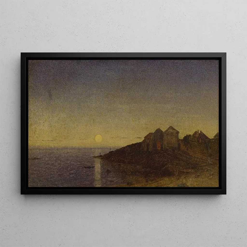Clair de lune, œuvre de James Augustus Suydam, évoque la magie d'une nuit paisible, baignée par la lumière douce de la lune. Cette reproduction délicate capture un paysage idyllique où les reflets argentés dansent sur l'eau calme, créant une ambiance de rêve et de tranquillité. Les nuances de bleu et de violet, subtilement mélangées, confèrent à la toile une atmosphère romantique et mélancolique. La technique impressionniste de Suydam, avec ses touches de pinceau fluides, permet de ressentir la fraîcheur de la nuit et la beauté éphémère de la nature. Ce tableau invite à la contemplation et à l'évasion, offrant un moment de sérénité à ceux qui l'observent.