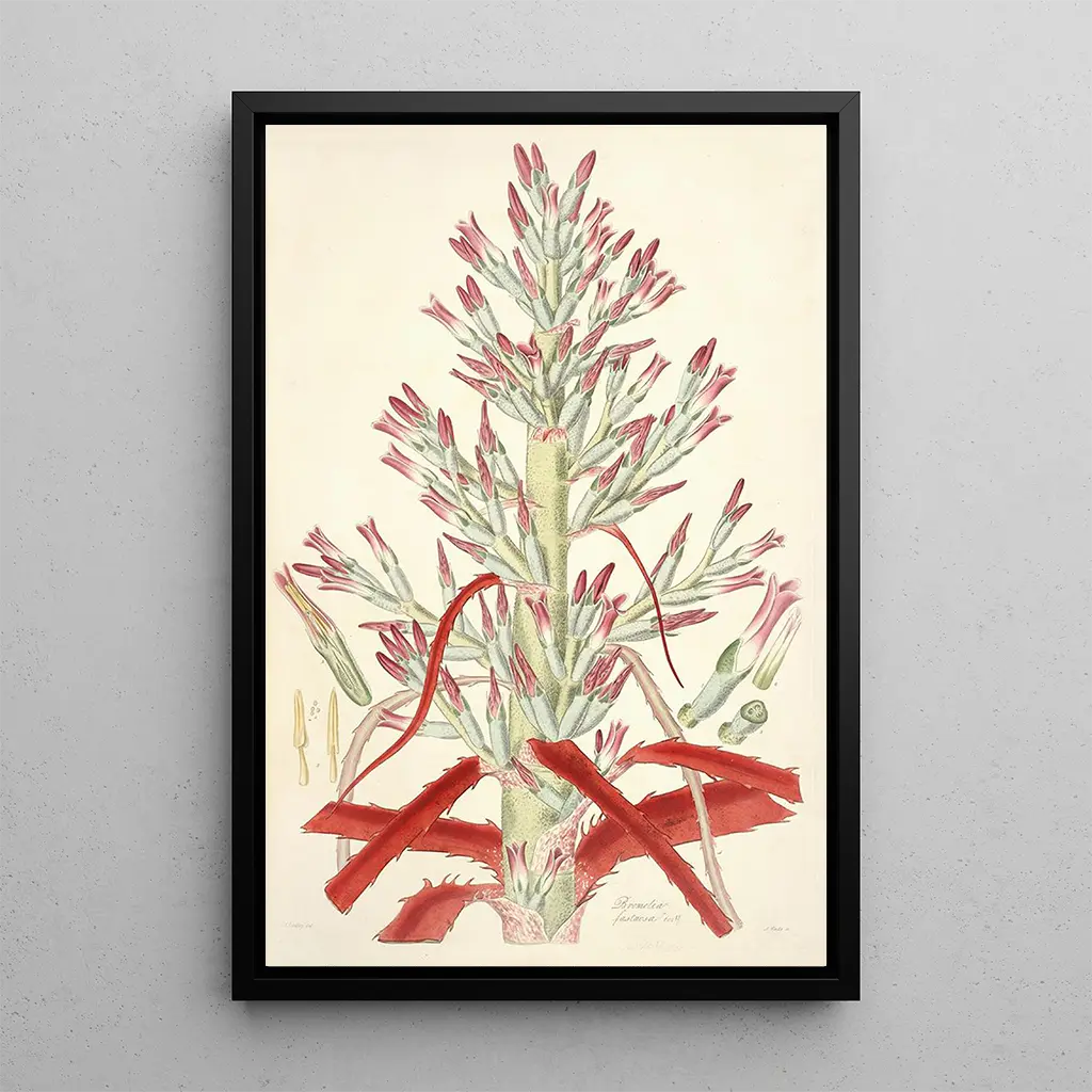 Taidegrafiikka Collectanea botanica Pl01 sukelsi meitä rehevään maailmaan, jossa jokainen kasvi on esillä poikkeuksellisella tarkkuudella. Värikkäät ja yksityiskohtaiset kuvitukset muistuttavat salaisesta puutarhasta, jossa luonto paljastaa koko loistonsa. John Lindleyn käyttämä kaiverrustekniikka mahdollistaa lehtien tekstuurin ja kukkien hienostuneisuuden vangitsemisen, luoden samalla rauhallisen ja kiehtovan tunnelman. Tämä taidegrafiikka kutsuu katsojan pysähtymään ja ihmettelemään kasvikunnan kauneutta.