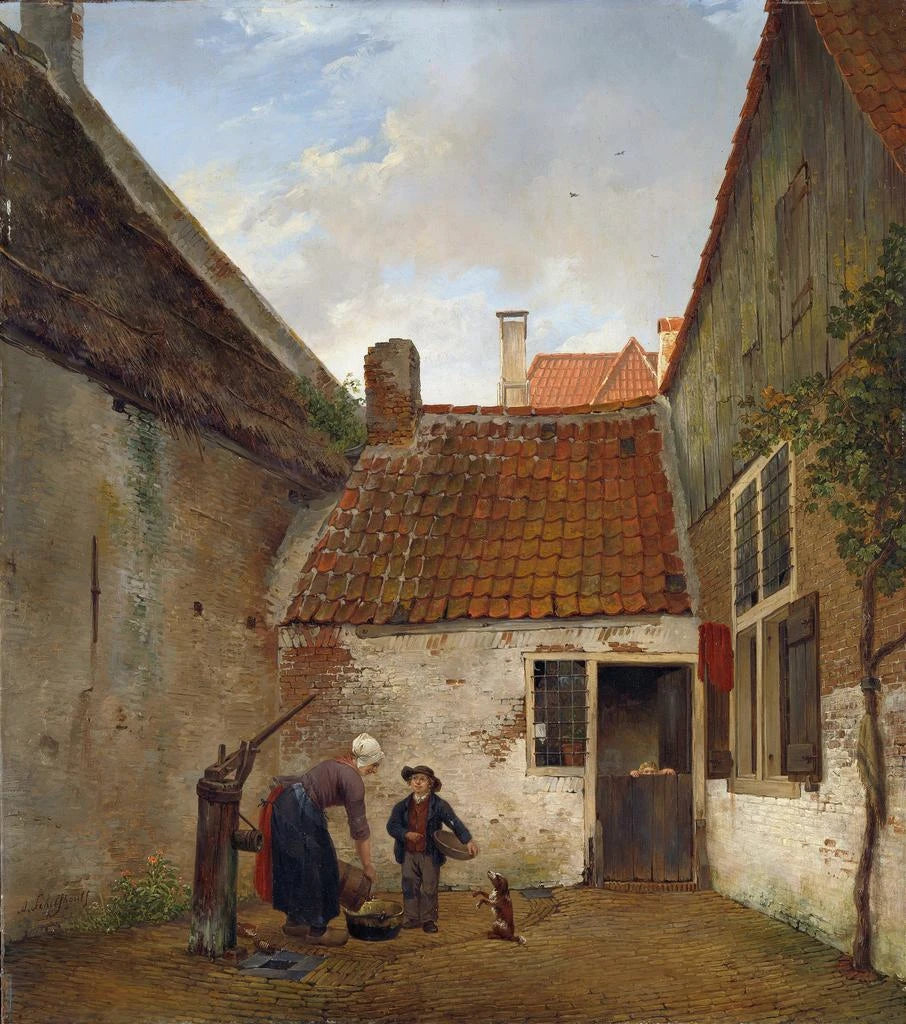 Laadukas taidetuloste "Cour intérieure" Andreas Schelfhoutilta kutsuu sukeltamaan maailmaan, jossa luonto ja arkkitehtuuri kietoutuvat hienovaraisella harmonialla. 1800-luvun hollantilainen maalari Schelfhout onnistui vangitsemaan maisemien ja arkipäivän kohtauksien olemuksen herkkyydellä, joka ylittää ajan. Tässä teoksessa katsoja tervetulleeksi valoisan pihan keskelle, jossa varjojen ja valon leikit paljastavat pysäytetyn hetken taian. Rauhallinen kohtaus luo tunnelman tyyneydestä, joka on ihanteellinen pohdintaan ja pakomatkaan.