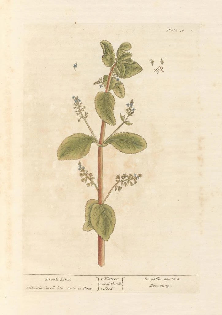 Elizabeth Blackwell on merkittävä hahmo 1700-luvun kasvitieteellisessä kuvituksessa. Hän syntyi vuonna 1707 ja onnistui vakiinnuttamaan asemansa miesten hallitsemalla alalla, ollen ensimmäinen nainen, joka julkaisi kasvitieteellisten taidegrafiikka- kirjan, "A Curious Herbal". Hänen teoksensa, kuten "Cresson de fontaine", ovat intohimon ja halun kunnianosoitus kasveille. Hänen aikansa tieteellisten löytöjen inspiroimana Blackwell osasi yhdistää taiteen ja tieteen, edistäen kasvitieteen kehitystä. Hänen työnsä on arvokas todistus valistuksen aikakaudesta ja tieteellisen havainnoinnin noususta.