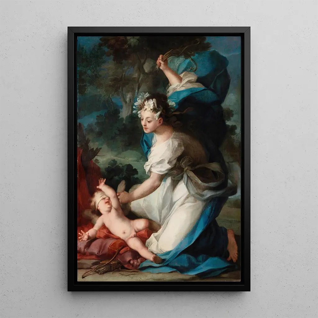 Cupidon châtié : une scène de passion et de rédemption Dans "Cupidon châtié", Ignazio Stern nous offre une représentation poignante de la mythologie amoureuse. Cette toile illustre le moment où Cupidon, le dieu de l'amour, est confronté aux conséquences de ses actes. Les couleurs chaudes et les expressions dramatiques des personnages créent une atmosphère chargée d'émotion. La composition, riche en détails, attire le regard vers le jeune dieu, dont la posture trahit à la fois la vulnérabilité et la détermination. Cette taidegrafiikka de "Cupidon châtié" évoque une réflexion sur l'amour, ses plaisirs et ses défis, tout en captivant l'imagination. Ignazio Stern : un virtuose du baroque Ignazio Stern, peintre vénitien du XVIIIe siècle, est reconnu pour sa maîtrise du style baroque, caractérisé par des compositions dynamiques et des couleurs éclatantes. Sa formation auprès de grands maîtres de son époque a façonné son approche artistique, lui permettant d'explorer des thèmes variés allant de la mythologie à la vie quotidienne. Stern a su s'imposer comme un artiste de premier plan, ses œuvres étant souvent commandées par des nobles et des institutions religieuses. Son héritage artistique perdure, témoignant de l'importance de son travail dans l'évolution de l'art vénitien. Une acquisition décorative aux multiples atouts La taidegrafiikka de "Cupidon châtié" est un ajout précieux à toute collection d'art. Que ce soit dans un salon, un bureau ou une chambre, ce tableau apporte une touche de sophistication et d'émotion à votre décoration intérieure. Sa qualité d'impression et sa fidélité aux nuances originales garantissent une œuvre d'art qui saura séduire vos invités. Avec son attrait esthétique et son message profond, cette toile devient un élément central de votre espace, incitant à la réflexion et à l'admiration à chaque regard posé sur elle.