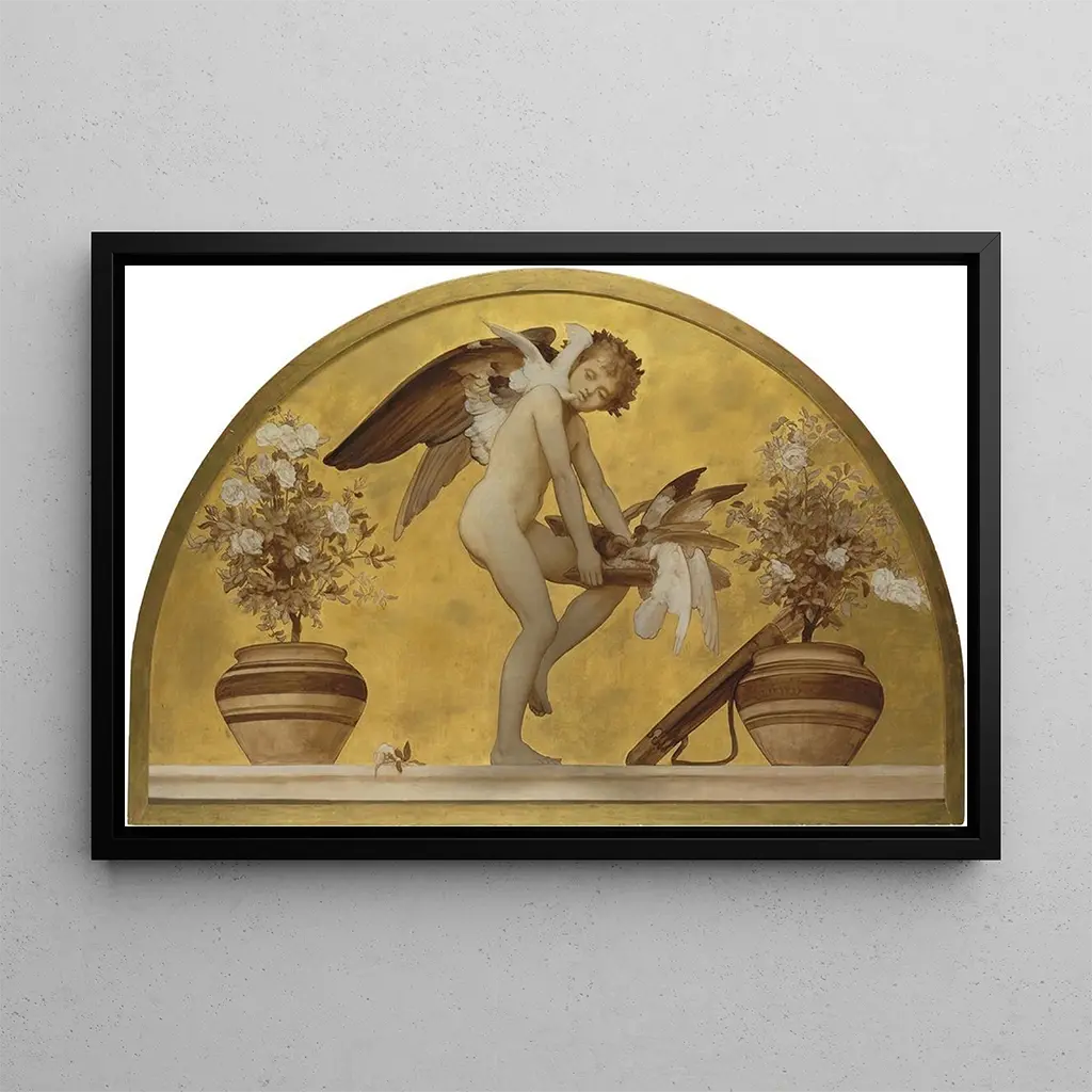 Frédéric Leighton, preraphaelilaisen liikkeen ikoni, on jättänyt jälkensä aikakauteensa hienostuneilla ja symboliikkaa täynnä olevilla teoksillaan. Syntynyt vuonna 1830, tämä brittiläinen taiteilija sai vaikutteita italialaisesta renessanssista sekä klassisista perinteistä. Hänen tyylinsä on tunnusomaista yksityiskohtiin kiinnitetty huomiota ja rohkeaa väritulkintaa. Leighton oli myös innokas akateemisen taiteen puolustaja, pyrkien nostamaan maalauksen arvostusta verrattavaksi veistoksen tasoon. Hänen taiteellinen perintönsä elää edelleen, ja tämä taidegrafiikka Cupidon ja kyyhkyset on erinomainen esimerkki hänen poikkeuksellisesta lahjakkuudestaan.