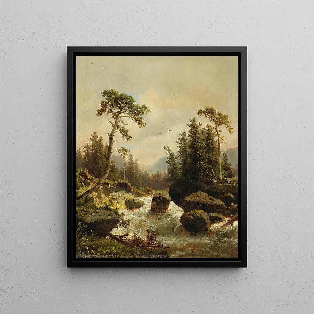 Chwala'n teos erottuu tyylillään, joka yhdistää realismia ja impressionismia, tarjoten samalla uskollisen ja runollisen näkymän hänen ympäristöönsä. Siveltimenvedot, kevyet ja tarkat, antavat teokselle erityisen dynamiikan, kun taas valittu väripaletti viittaa alppimaisemien raikkauteen. Jokainen yksityiskohta, olipa kyse sitten rehevistä lehdistä tai veden heijastuksista, on käsitelty huolellisesti, mikä todistaa taiteilijan tarkkaavaisuudesta. Tämä uskollisen esityksen ja taiteellisen herkkyyden yhdistelmä mahdollistaa katsojan tuntea emotionaalisen yhteyden teokseen, ikään kuin hän olisi itse paikalla idyllisessä ympäristössä. Syvyys ja perspektiivi, jotka Chwala on valinnut, lisäävät kohtaukseen lähes kolmiulotteisen ulottuvuuden, rohkaisten visuaaliseen tutkimiseen ja pohdiskeluun.