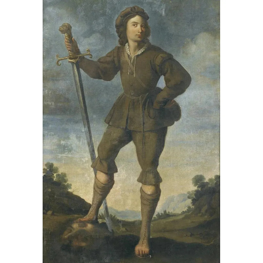 David-taulu, jonka on luonut Antonio del Castillo y Saavedra, vangitsee raamatullisen hahmon sankarillisen olemuksen dynaamisen sommittelun ja kirkkaiden värien kautta. Davidin asento, hänellä olevan heittokivensä kanssa, huokuu rauhallista voimaa, kun taas vaatteiden ja kasvojen ilmeiden yksityiskohdat lisäävät teokseen emotionaalista syvyyttä. Valo näyttelee keskeistä roolia, korostaen kehon ääriviivoja ja luoden vaikuttavan kontrastin taustan kanssa. Tämä taidegrafiikka Davidista kutsuu pohtimaan rohkeutta ja uskoa, samalla tarjoten kiehtovan visuaalisen kokemuksen.