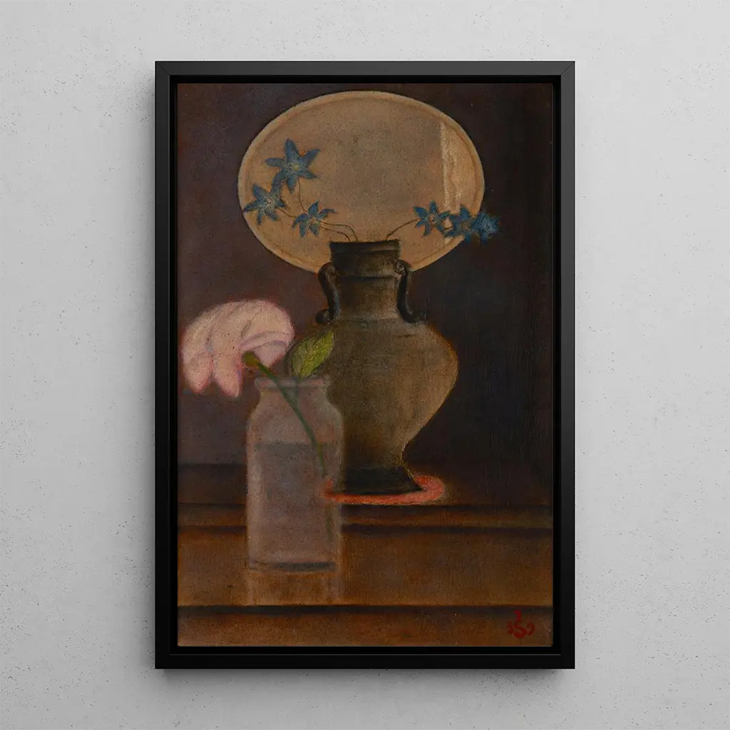 Taidegrafiikka Delphiniums et une rose kuljettaa meidät vehreään puutarhaan, jossa kukat puhkeavat eloon kirkkaiden värien räjähdyksessä. Delphiniumsin sinisten sävyjen gradientit muodostavat harmonisen kontrastin herkkävaraisen roosan kanssa, luoden visuaalisesti kiehtovan koostumuksen. Jan Spychalskin maalaustekniikka paljastaa huolellisen huomion yksityiskohtiin, jokainen terälehti tuntuu värähtelevän valon alla. Tämä teos herättää luonnon katoavaisen kauneuden ja kutsuu katsojan arvostamaan kukkien loistoa koko upeudessaan.