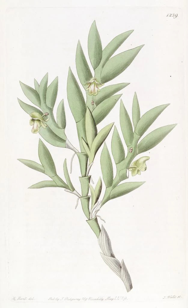 1800-luvun alun kasvi-illustrointiin erikoistunut Sydenham Edwards jätti jälkensä aikakauteensa innovatiivisella lähestymistavallaan ja kasvien tutkimukseen omistautumisellaan. Hänen aikansa tieteellisten löytöjen innoittamana hän osasi yhdistää taiteen ja tieteen luodakseen poikkeuksellisen tarkkoja kuvituksia. Dendrobium à deux tranchants on täydellinen esimerkki hänen taidostaan, kuvaten paitsi kukkien kauneutta myös niiden merkitystä kasvitieteellisessä maailmassa. Edwardsin panos kasvi-illustroinnin kehitykseen teki luonnosta saavutettavan ja kiehtovan laajalle yleisölle.