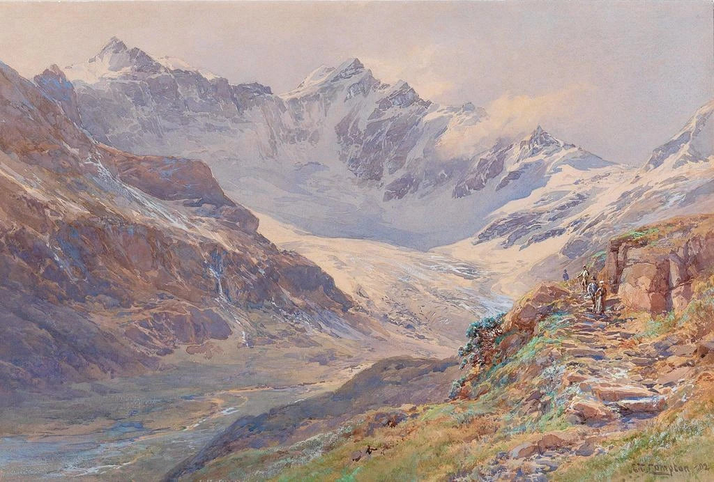 Edward Theodore Compton, peintre britannique du XIXe siècle, est reconnu pour ses paysages inspirés par la nature sauvage. Influencé par le mouvement romantique, il a su capturer la beauté des montagnes et des vallées avec une sensibilité unique. Sa carrière s'étend sur plusieurs décennies, durant lesquelles il a voyagé à travers l'Europe, s'imprégnant des paysages qu'il a ensuite immortalisés sur toile. Compton a également été un fervent défenseur de la nature, et son œuvre témoigne d'une profonde admiration pour les merveilles du monde naturel. Sa capacité à transmettre l'émotion et la grandeur des paysages fait de lui une figure importante de l'art paysager.