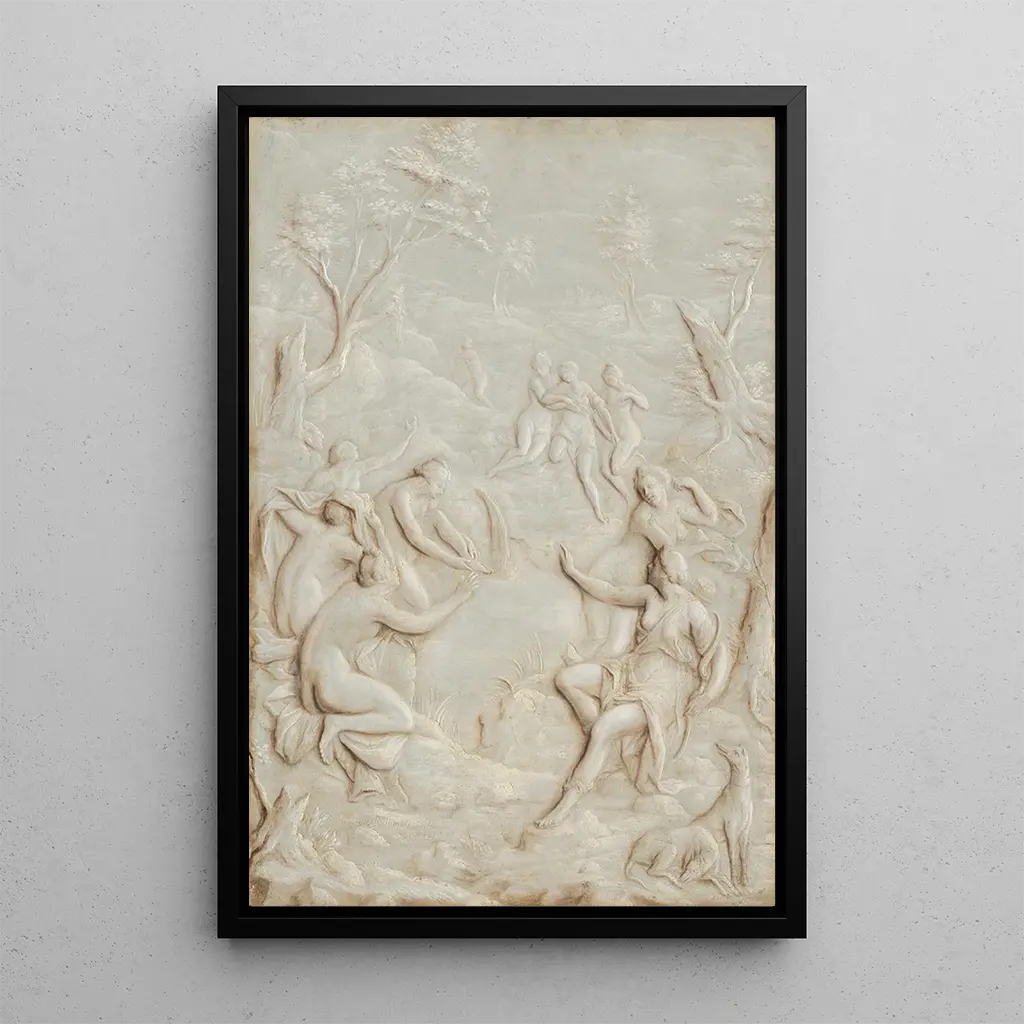 Tässä kiehtovassa teoksessa Jakob Kellner johdattaa meidät mytologiseen kertomukseen, jossa Dianen kauneus ja Calliston tragedia kohtaavat. Vivid värit ja yksityiskohtaiset yksityiskohdat paljastavat tunteiden täyteisen kohtauksen, jossa valo näyttelee keskeistä roolia korostaen hahmojen ilmeitä. Dynaaminen sommittelu, pehmeät linjat ja elegantit asennot kutsuvat tutkimaan tämän kohtaamisen monimutkaisia tunteita. Tunnelma on sekä rauhallinen että jännittynyt, mikä kertoo jumalallisen kauneuden ja inhimillisen kivun dualiteetista.